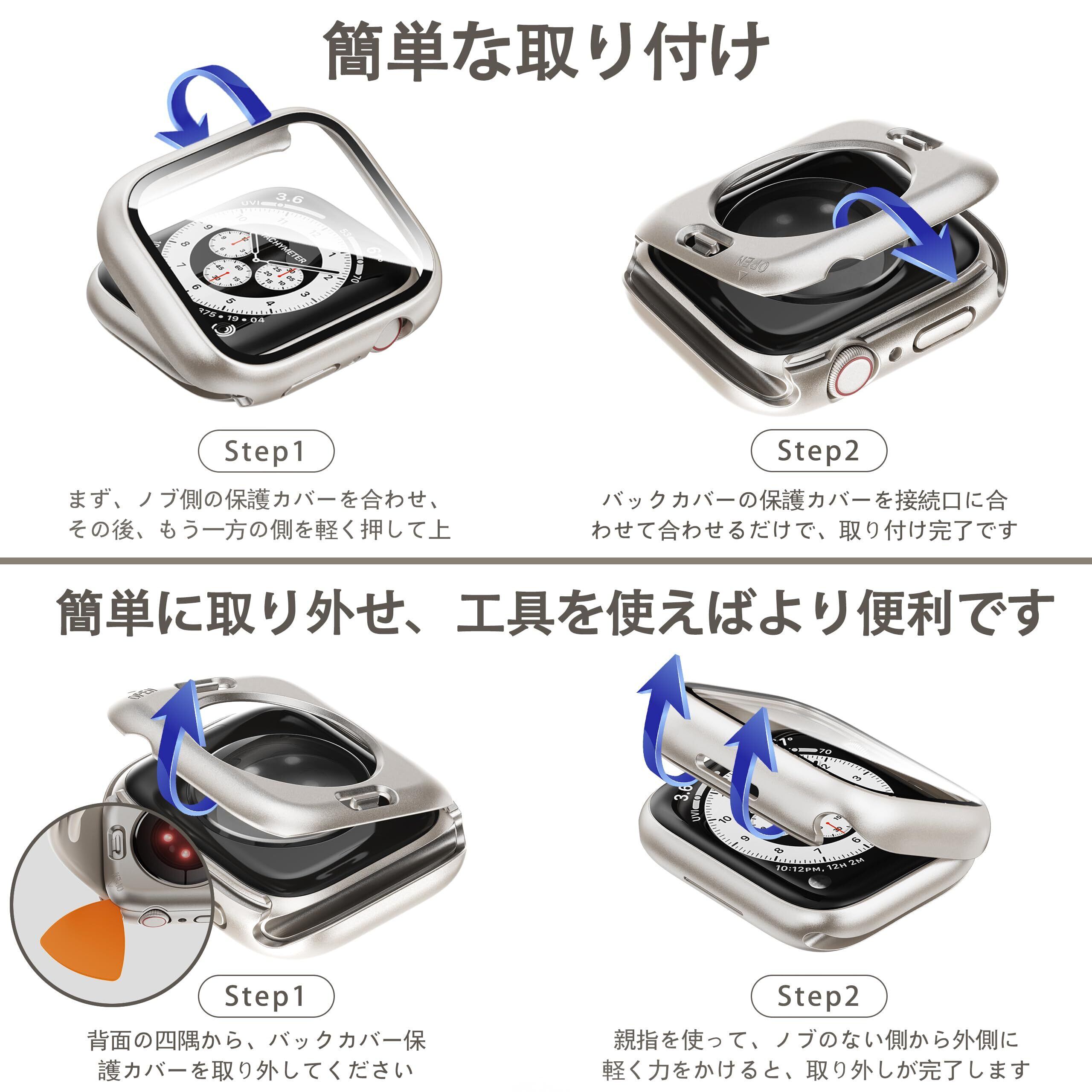 【高タッチ感度&高透過率】このApple Watch ケースをつけたまま、タッチスクリーンに直接触れ、スピーカーやマイクもすべて簡単にアクセスできます。各ボタンは高いタッチ感度を提供して、スムーズで快適な操作を実現します。高透光率なアップルウォッチ カバーで、Apple Watch 元の画質と視覚を完全に復元します。