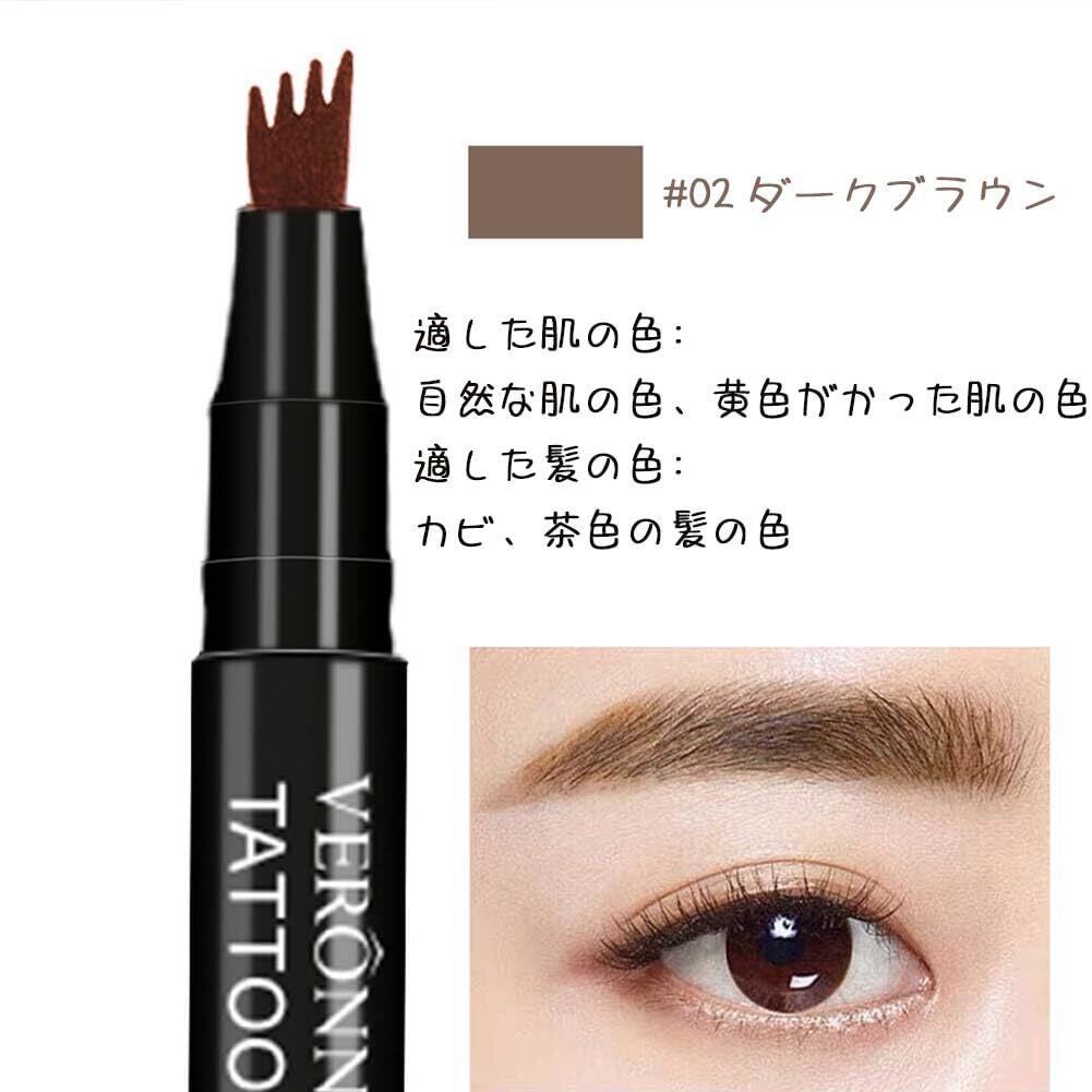 新感覚ナチュラル眉 4本爪アイブロウペン 細仕様 滑らかなブラシヘッド 色落ちせず鮮明で鮮やかなフォーク型ブラシ リキッドブロウ 持ち運びや拭き取りが簡単、4本ヘッド、4チップ精密アイブロウペンシル、4チップ眉毛、防水性と耐汗性 - 長持ちする眉毛ペン、初心者の必需品、プロのメイクアップアーティストに最適(#02 ダークブラウン)