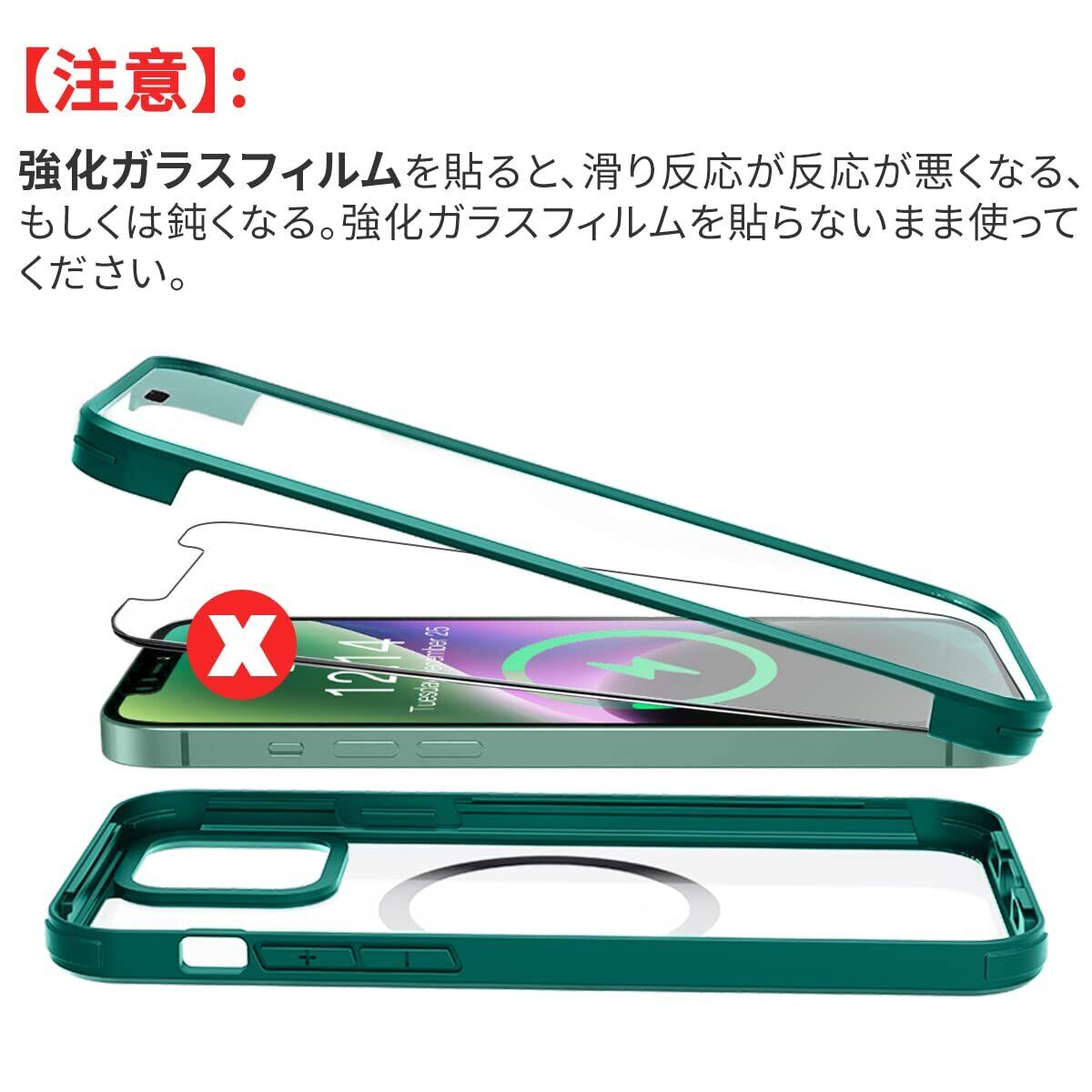 【高透明度の強化ガラスと100%のタッチ敏感度】iPhone 15 Magsafe ケースはドイツから輸入した高透明度の強化ガラスを使用しています。iPhone 15 Magsafe ケースはダイヤモンドのように透明で、iPhone 15の本来の美しさを楽しむことができます。iPhone 15 Magsafe ケースは100%の敏感度があり、スムーズなタッチスクリーン体験をお楽しみいただけます。別に スクリーン保護フィルムを購入するコストを節約できます。このiPhone 15 Magsafe ケースは完璧なワンストップ方案を提供します「備考:これをスクリーン保護フィルムと同時に使用しないでください」