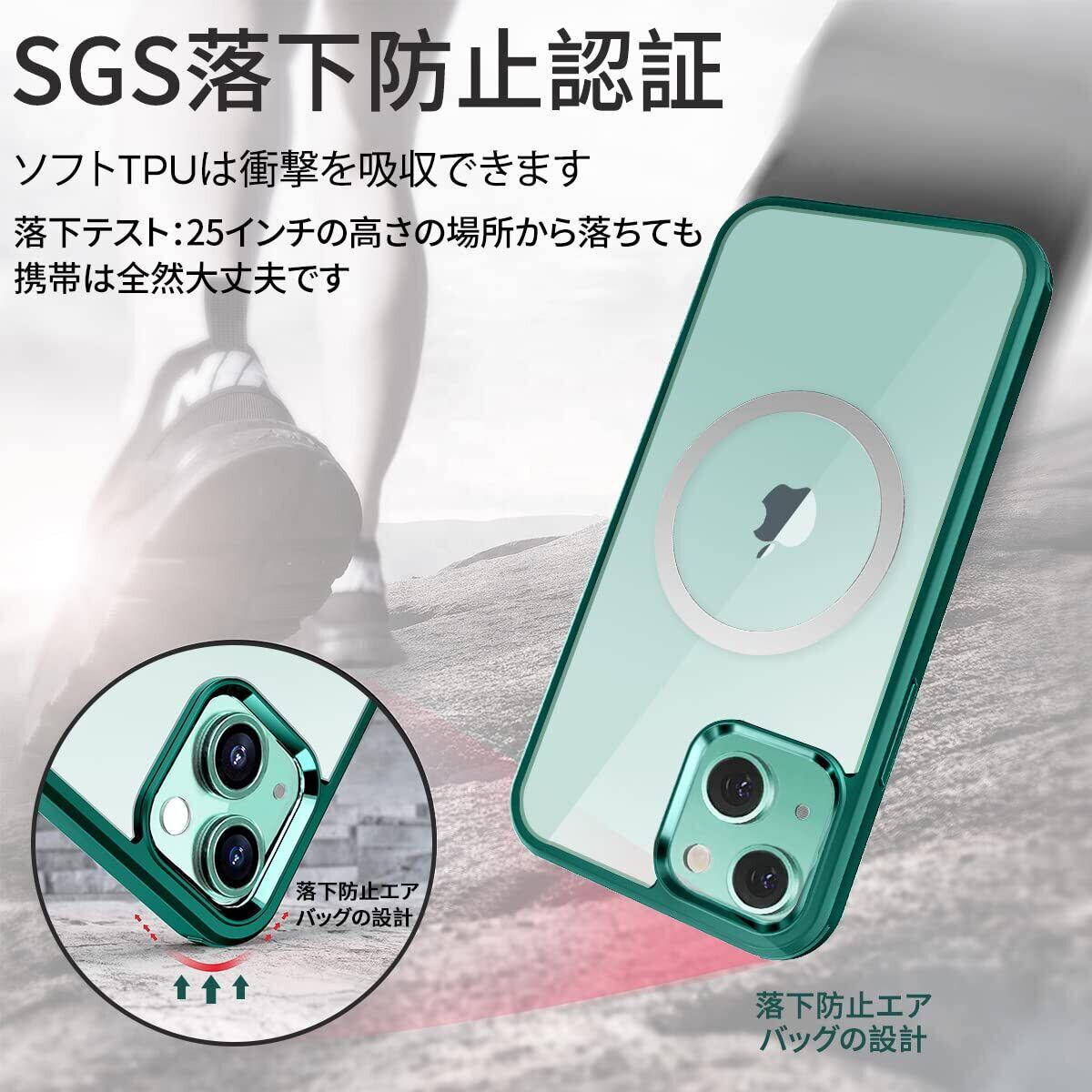 【両面強化ガラス・驚異的な耐衝撃性】HAUTRKBG iPhone 15 用 ケース クリア 全面保護 [MagSafe対応] [カメラフイルムを贈]信号干渉なし ソフトTPUバンパー マグセーフ ワイヤレス充電対応 米軍MIL規格取得 アイフォン 15 透明 スマホケース 6.1インチ(グリーン)