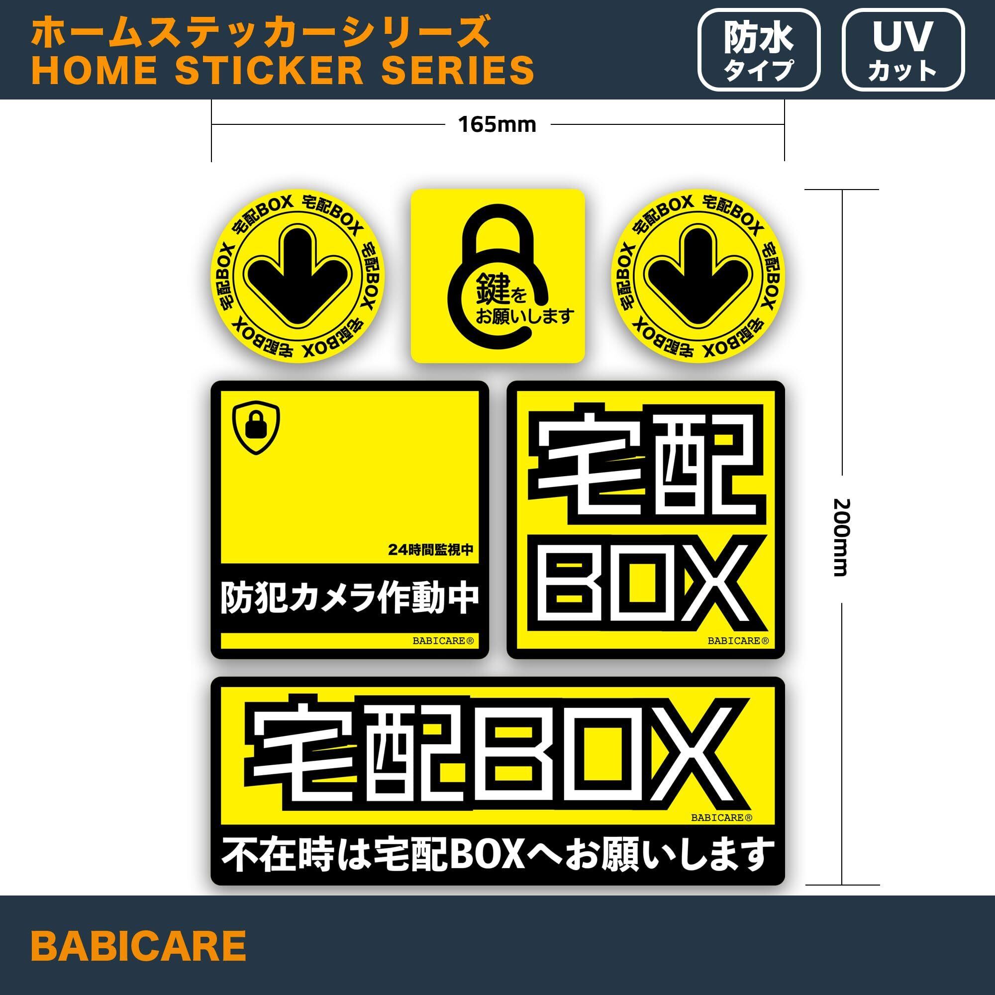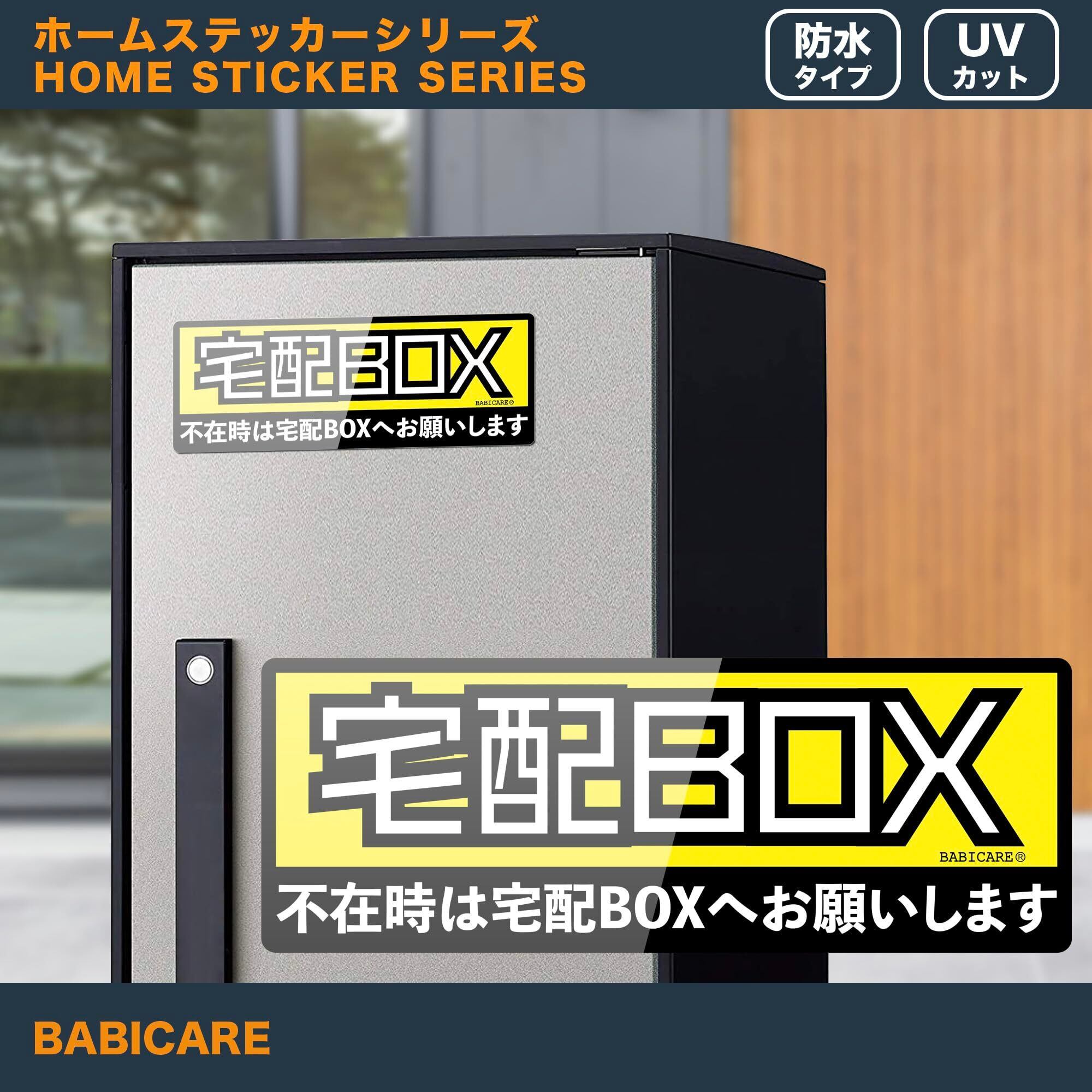 【BABICARE】不在時は宅配BOXへお願いします ステッカー 6枚セット 光沢/高耐候/防水/耐光/UVカット/日本品質PET製 (イエロー)