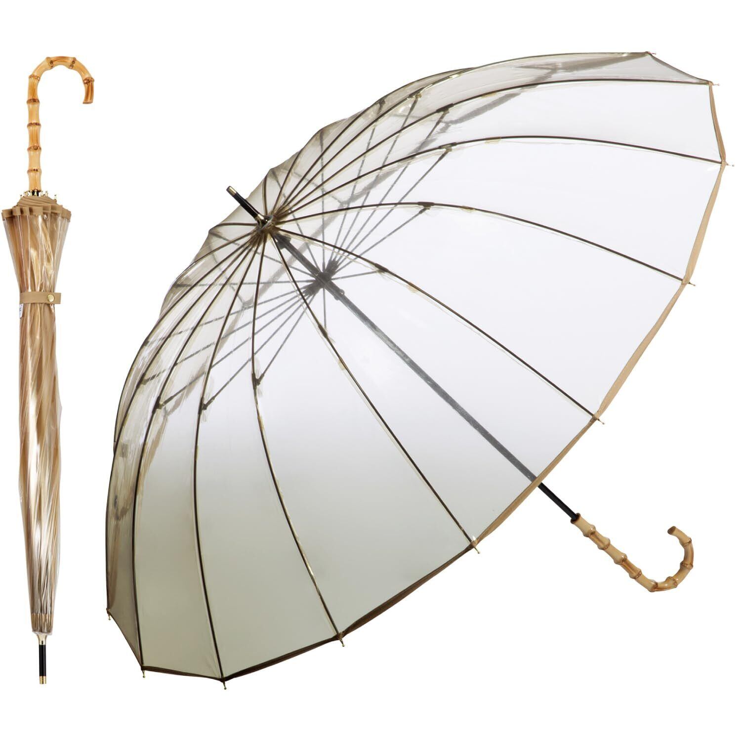 大人気!風に強い16本骨のおしゃれなビニール傘。 節があって持ちやすいバンブーハンドルは、シンプルながらも女性らしい上品な印象を演出します。
