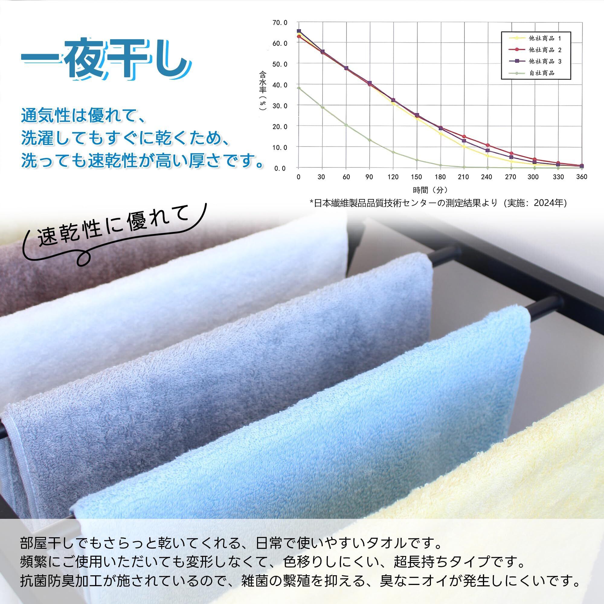2.吸水速乾:一夜干し、雑菌が繁殖しにくく、每日清潔にお使いいただけます。洗濯機を使わなくても、水を吸わせてから軽く絞っておけば、風通しのよいところに干すだけで、すぐに乾きます。綿とポリエステルが毛細血管現象で水分をすばやく吸収、拡散します。吸水率と速乾性高いタオルです。湿気によるカビなどの繁殖も一定的に抑えます。