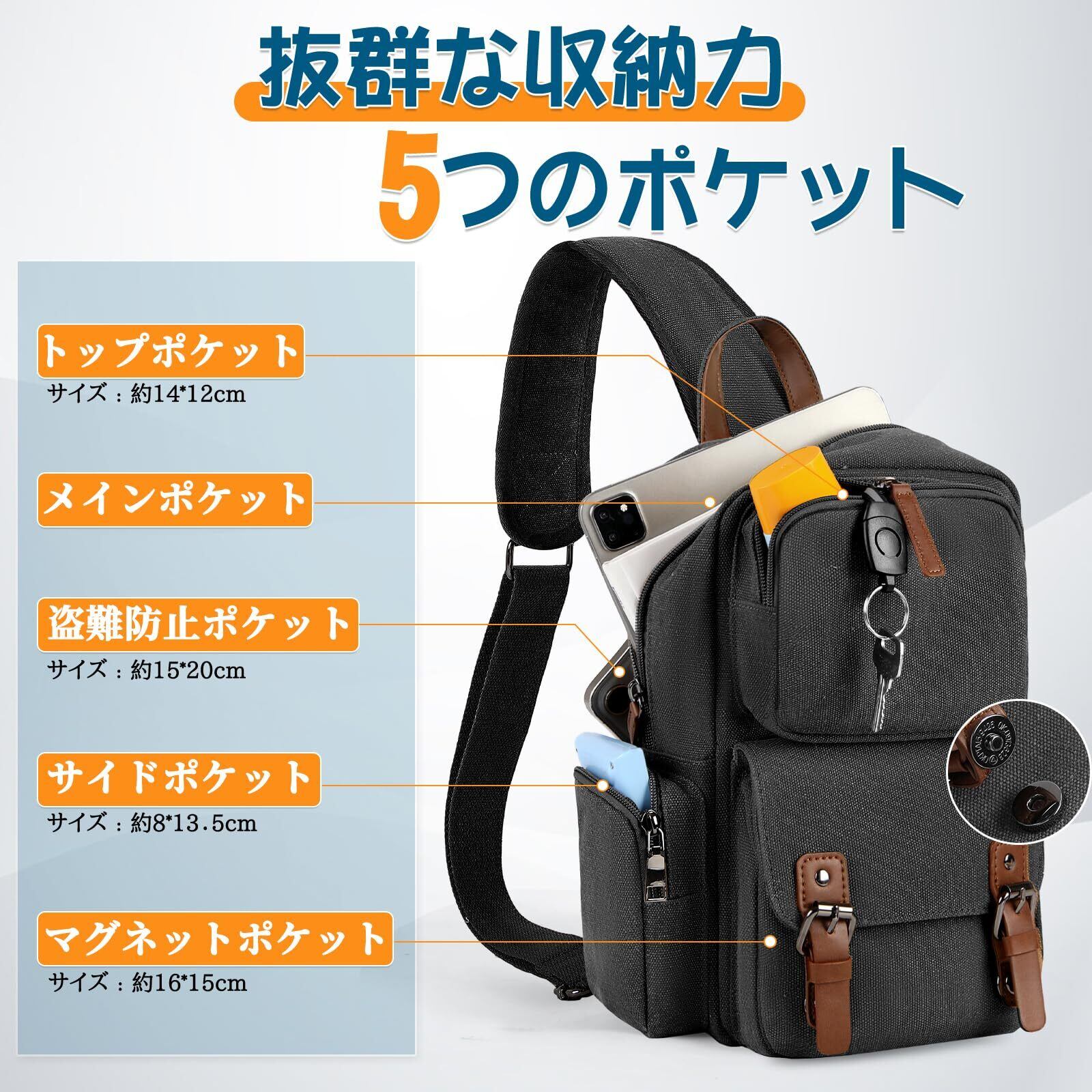[RAINSMORE] ボディバッグ メンズ 斜めがけ 大容量 ワンショルダーバッグ キャンバス 撥水帆布 肩掛けバッグ スポーツ 多機能 通勤 旅行 アウトドア 自転車 ブラック ブラウン