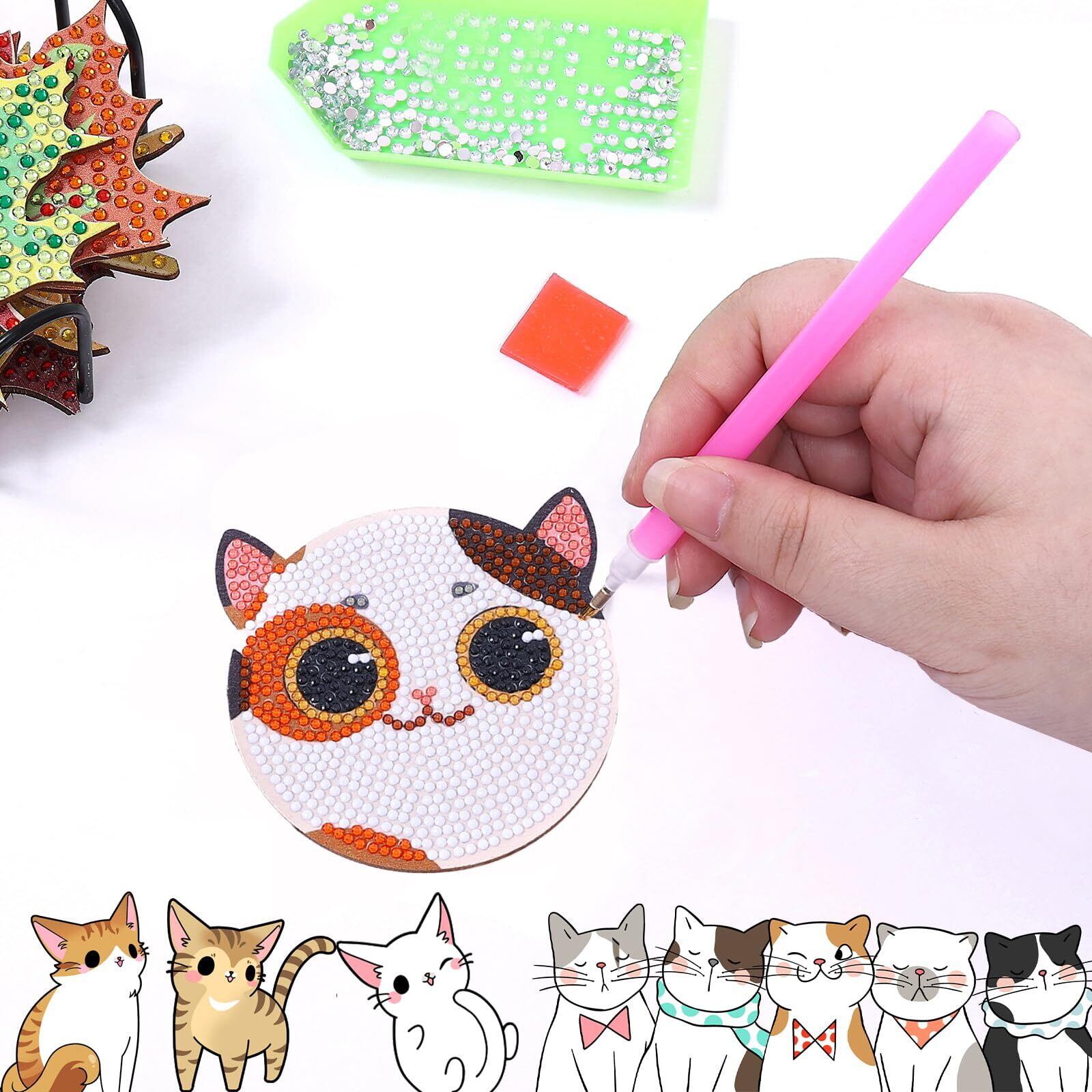 【2022最新】ダイヤモンドアート コースター ネコ キット 8PCS ビーズアート ダイアモンドアート セット カップマット コースター 手芸キット かわいい DIYダイヤモンドペインティング 5Dダイヤモンド塗装キット 初心者 大人 子供用 人気 手作り アートクラフト用品 プレゼント ホルダー付き(かわいいネコ-8個) | allstore5