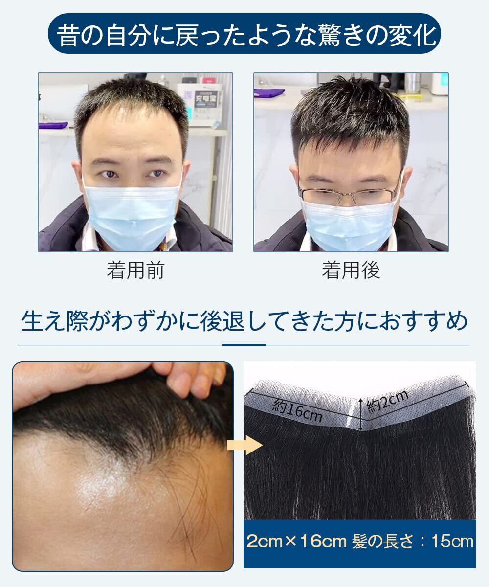 薄くて軽い:肌に優しく超薄型のフイルムのため、あなたの頭皮と一体化!着けていて人の多いところに行っても安心できます。