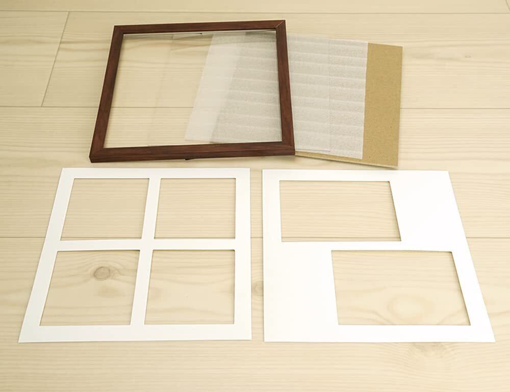 マット台紙2枚付き(紙マット) 1. 89×89mm写真×4窓:[マット窓寸]79mm×79mm×4窓、2. L判写真×2窓:[マット窓寸]79mm×117mm×2窓