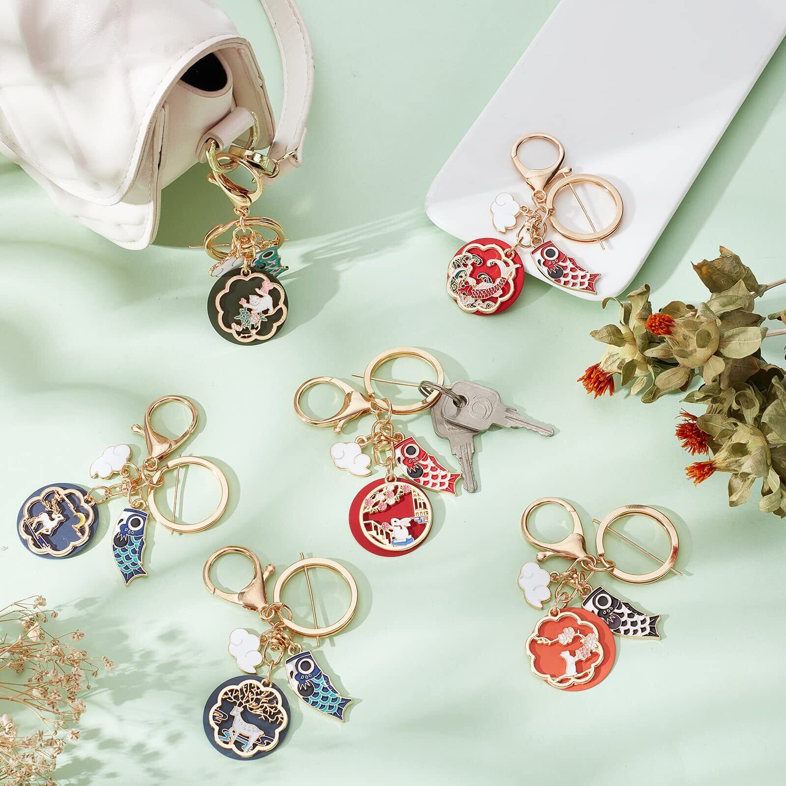 OLYCRAFT 6点 キーホルダー 鯉のぼり キーホルダーチェーン 和式 6種類 合金&エナメル チャームキーホルダー バッグチャーム キーリング 和風 ラッキー 工芸品 DIY バッグ飾り アクセサリーパーツ
