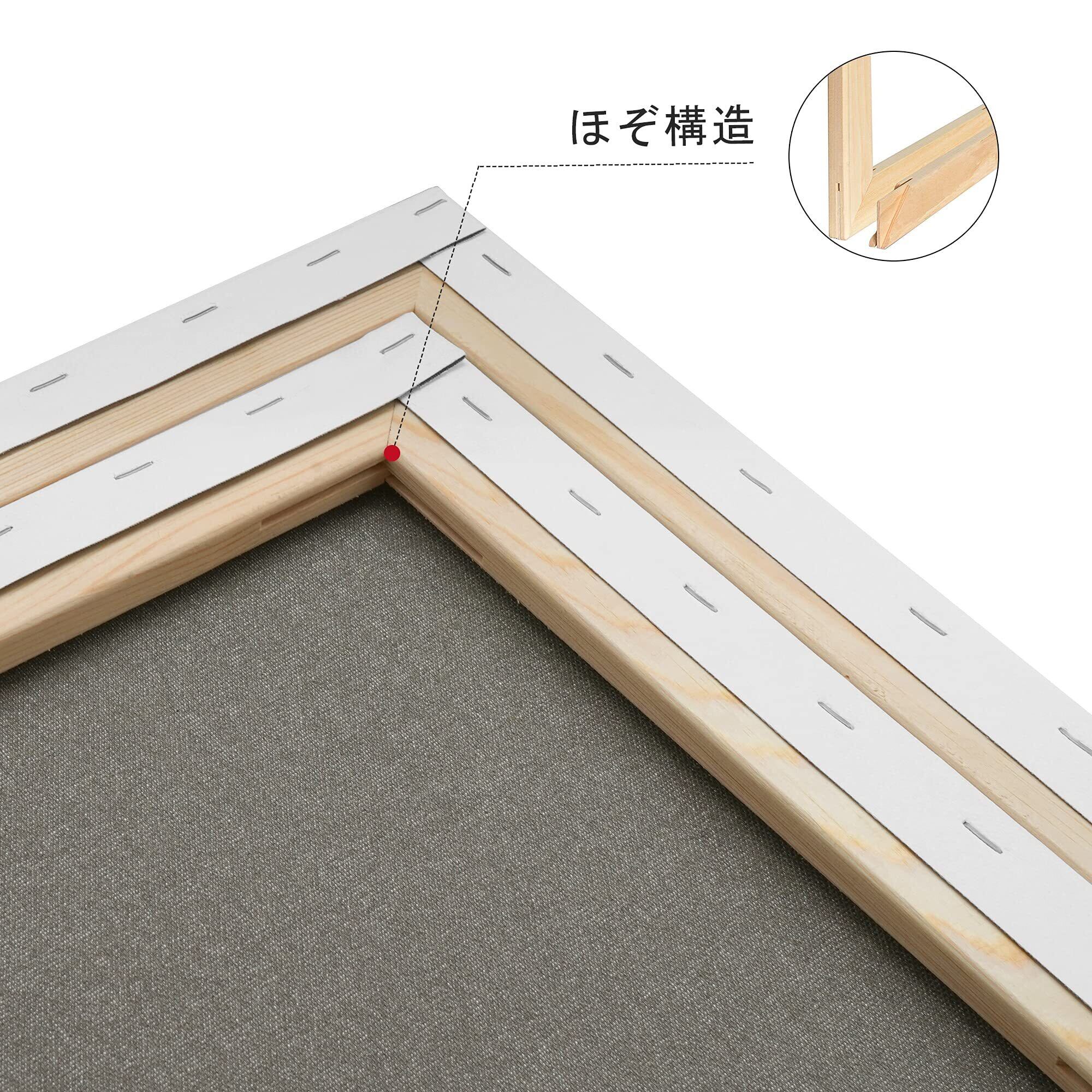 松木の張りキャンバスの枠 - 表装と壁掛けやすいように作られた標準サイズです。ほぞ穴とほぞが接続による木構造は、フレームの堅牢さを確保しています。キャンバスは枠にしっかりと引き伸ばされ、裏に釘付けされて、きれいな縁を形成します。