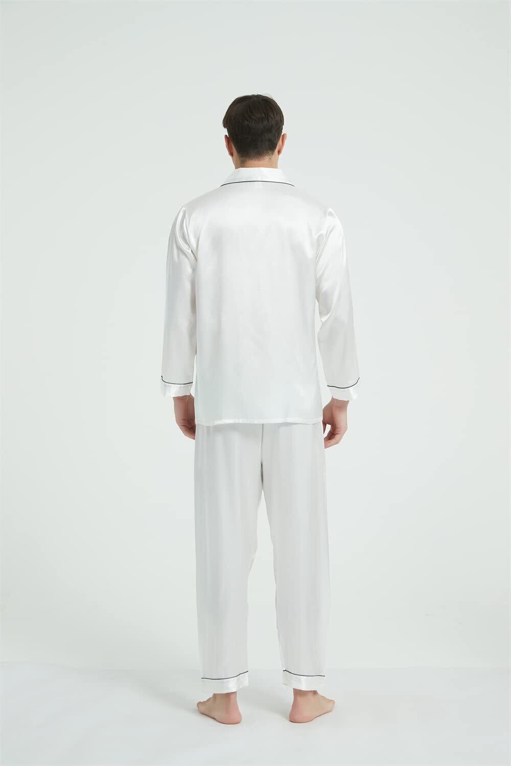 [KUMASEN] メンズ パジャマ シルク サテン 上下セット ルームウェア 部屋着 長袖 肌に優しい 前開き