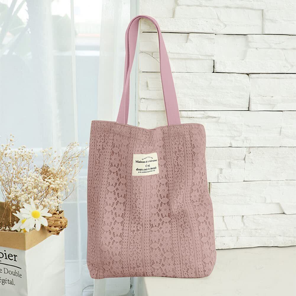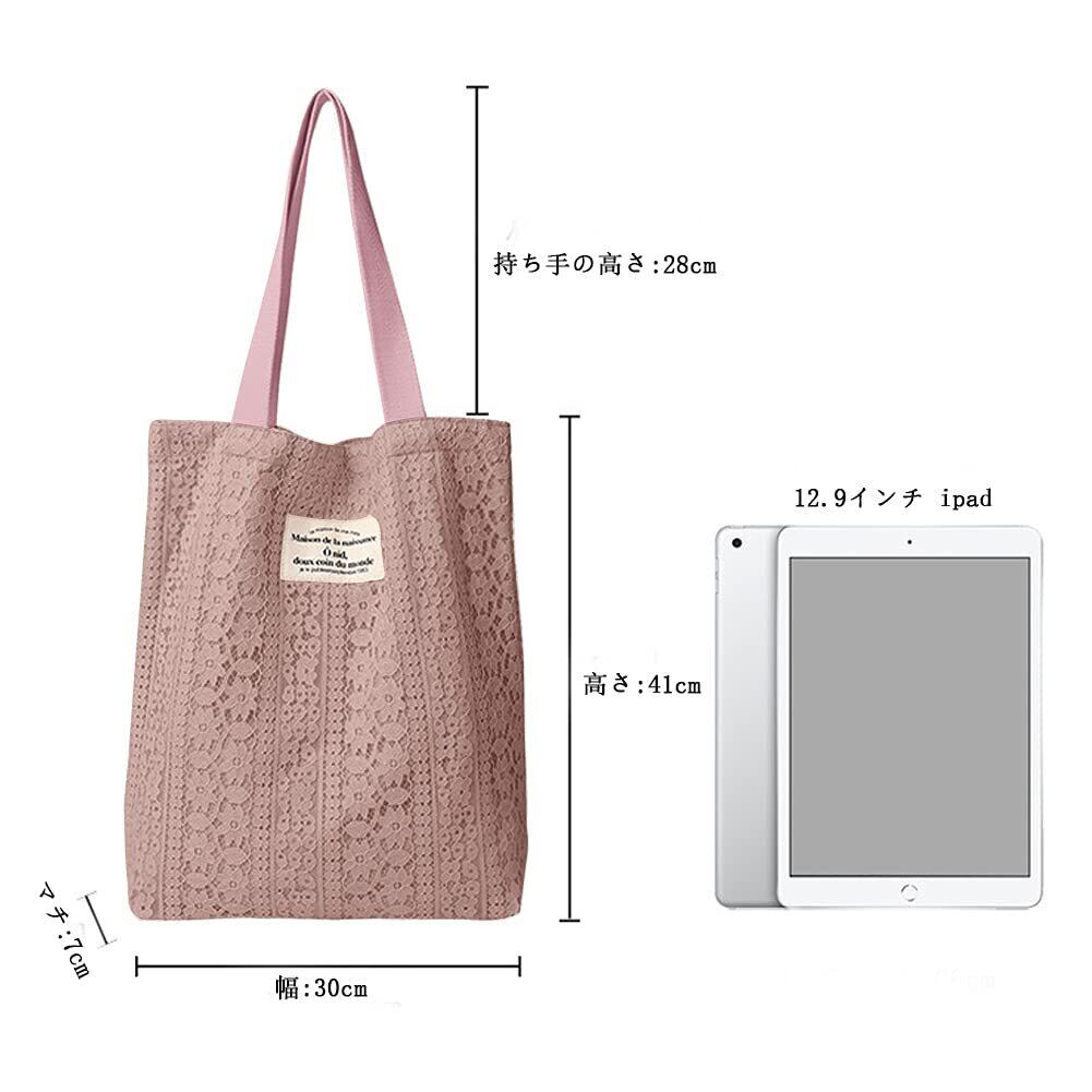 [Sueeya] (スイーヤ) トート バッグ レディース レース キャンバス ショルダー 2way 肩掛け 可愛い シンプル 軽量 おしゃれ シート 裏地付き 収納可能 ポケット ファッション 通勤 通学
