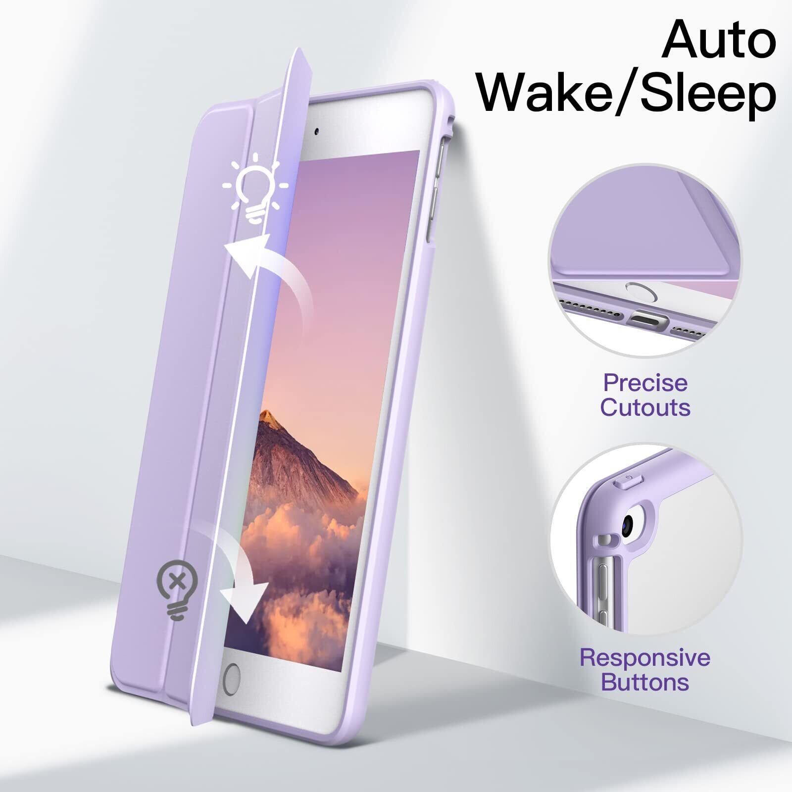 JETech iPad mini 5/4 ケース (7.9インチ、2019/2015モデル) Pencil収納可能 透明バックカバー 薄型 スタンド 衝撃吸収 タブレットカバー オートウェイク/スリープ機能 (ライトパープル)