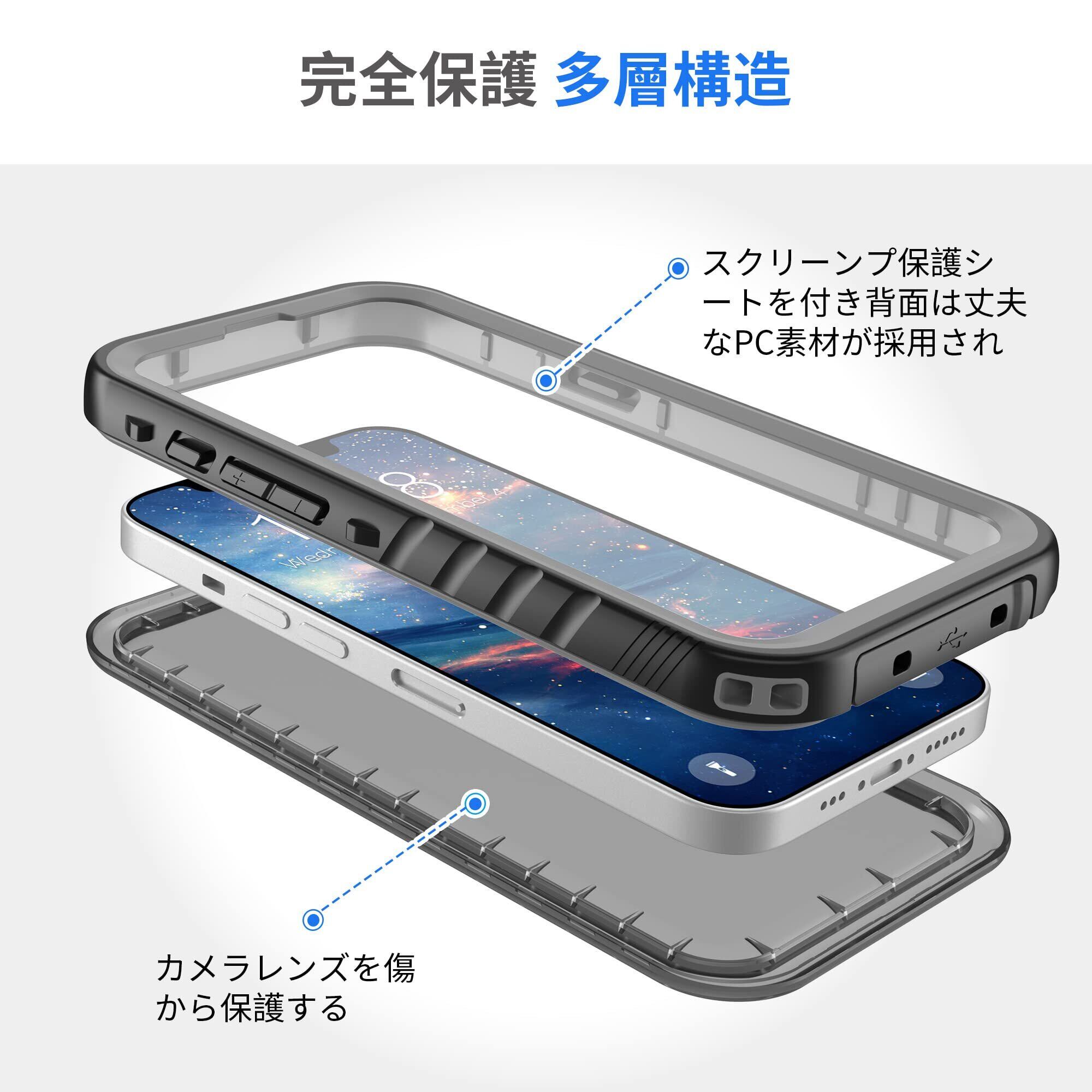 【IP68規格&完全防水】いPhone13 防水ケースは完全密封で、IP68防水規格等級を取得しておりました。水深さ2mの水中に1時間まで水没できます。また 釣り、お風呂、夏のプール、雨の日、冬のスキーいろいろな場合でも、いつもで安心してご利用いいただけます。