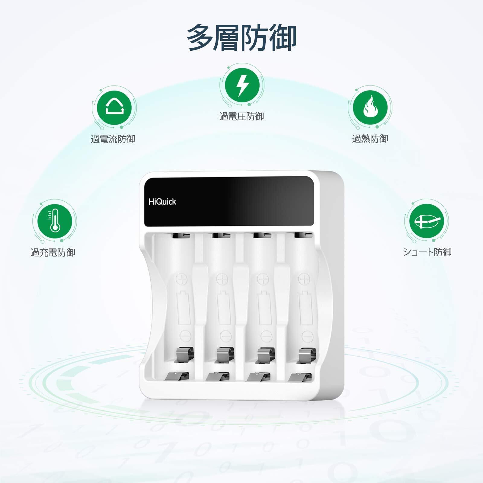 【特価セール】HiQuick 充電池充電器 単3 単4 ニッケル水素 ニカド充電池に対応 急速充電器 LCD付き 電池残量の表示 独立したスロット 単3形 単4形電池充電可能 Micro USB、Type-C入力ポート コンパクト 携帯便利 個別充電