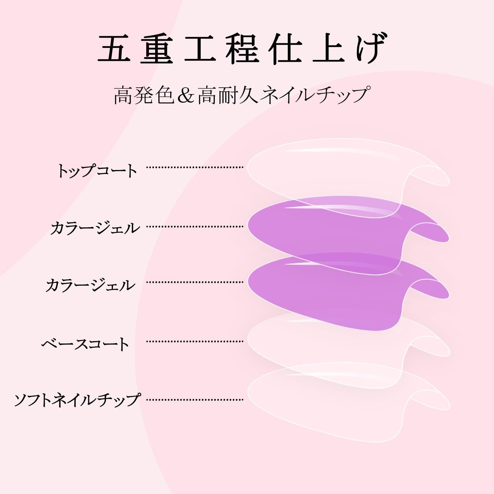【ナチュラルフィット&柔軟性】高品質アクリル製で柔らかくしなやか。爪床に負担をかけず、まるで自爪のような自然な装着感を実現します。「薄い後端部、厚い前端部」を特徴としています。薄い後端部はネイルチップ全体が爪にフィットしやすくなり、不快感を感じなくなります。