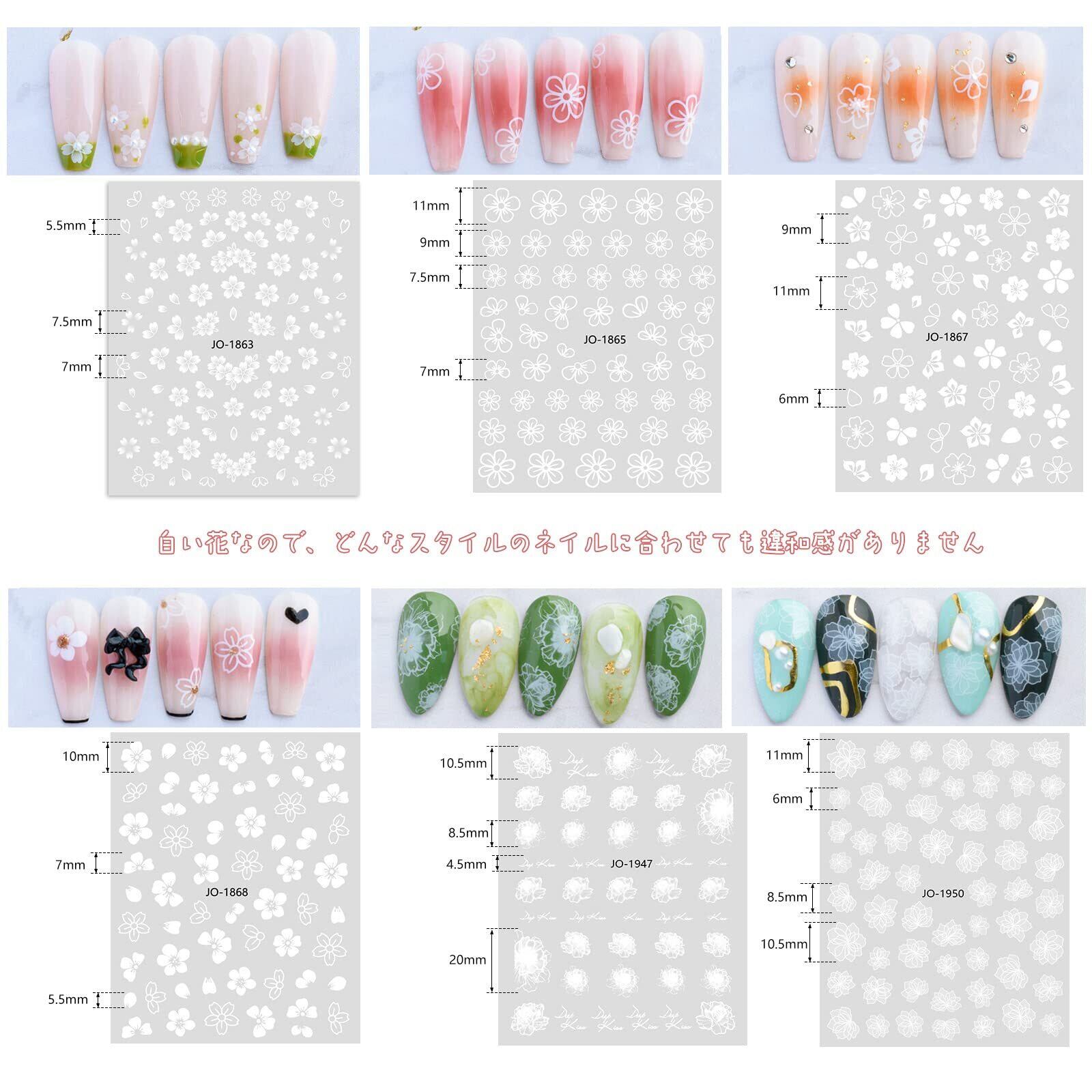 Sucodver ネイルシール 花 白 桜 花びら ホワイト ネイルステッカー フラワー 花柄 レース 半透明 6枚セット
