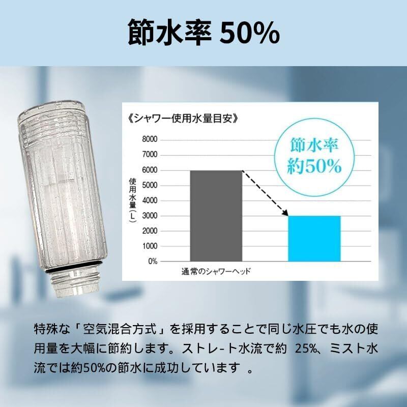 【塩素除去で敏感肌も安心】独自のフィルター技術により、水道水中の遊離残留塩素を効果的に除去。塩素による肌への刺激を最小限に抑え、乾燥やツッパリ感を防ぎます。毎日のシャワータイムを、肌にやさしくモイスチャー豊かな快適な体験に変えましょう。使用後は、滑らかでしっとりとした肌触りを実感でき、敏感肌の方でも心地よく入浴できます。