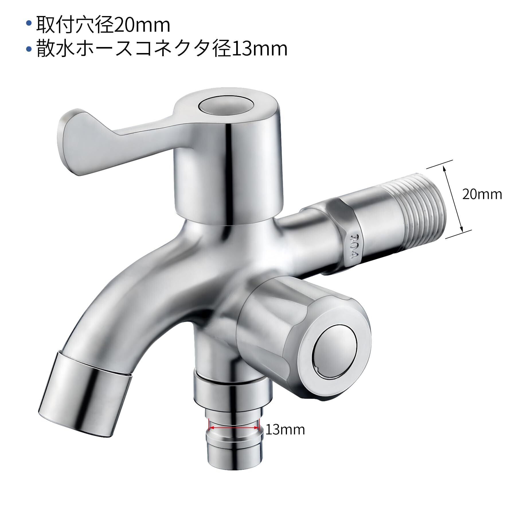 【防錆 節水】この2 口水栓の本体はSUS304ステンレス鋼と真鍮バルブコアを採用し、錆に強く長寿命設計。真鍮バルブコアは数万回の開閉試験をクリアし、水漏れ防止機能で確実な密閉性を実現。レバー式ハンドルの90度開閉デザインは左右操作で直感的な水流調整が可能。人間工学に基づく使い心地で、節水効果が長期的な水道代削減につながります。