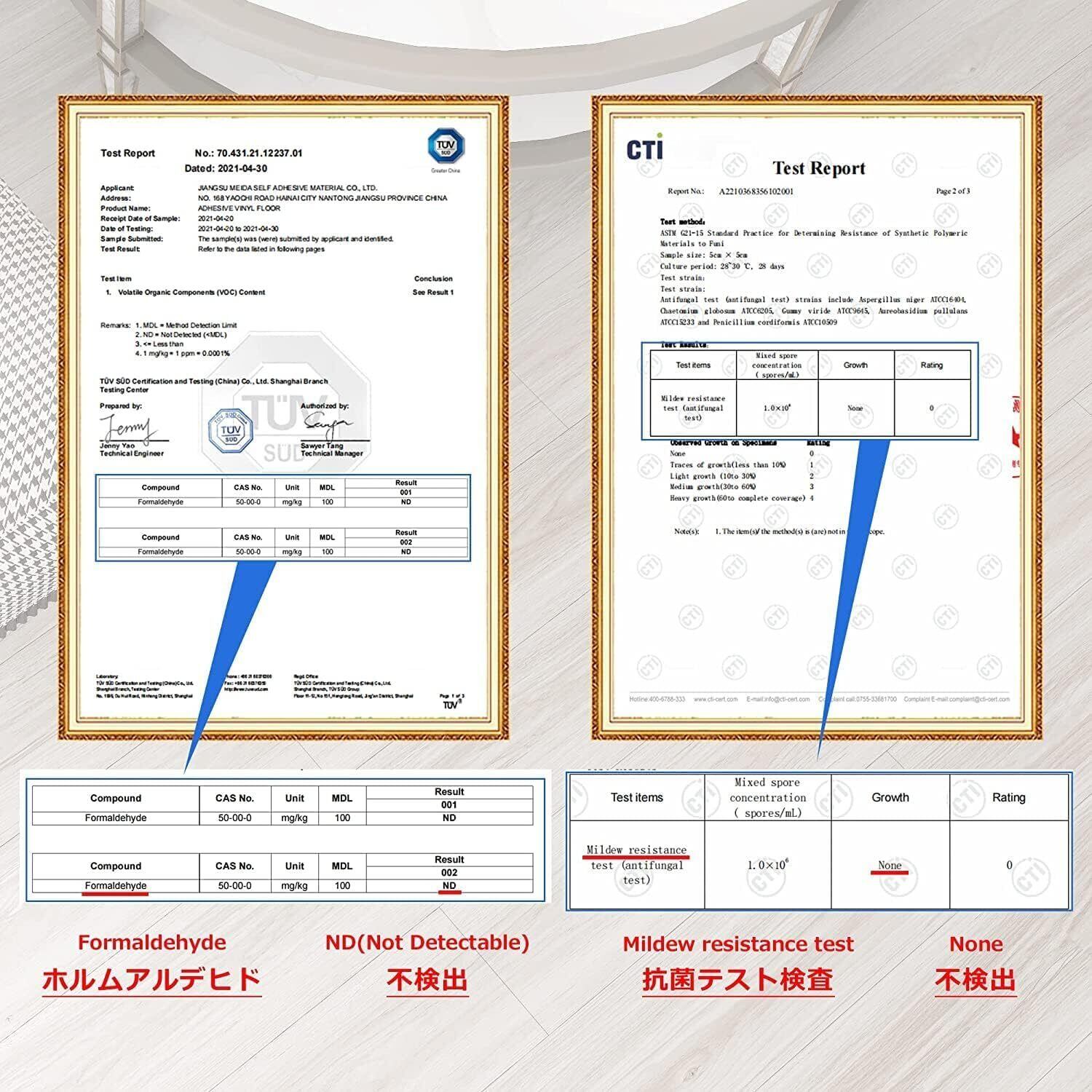 【のりの気味ない、抗菌効果】===環境に優しいノリを採用して、フロリングも抗菌効果あります。【賃貸でもOK】ノリ残せずきれいにはがれますから賃貸でもOK!剥がしてもまた貼り直れます。水はねする場所でも防水なのでお手入れは拭き取るだけ!