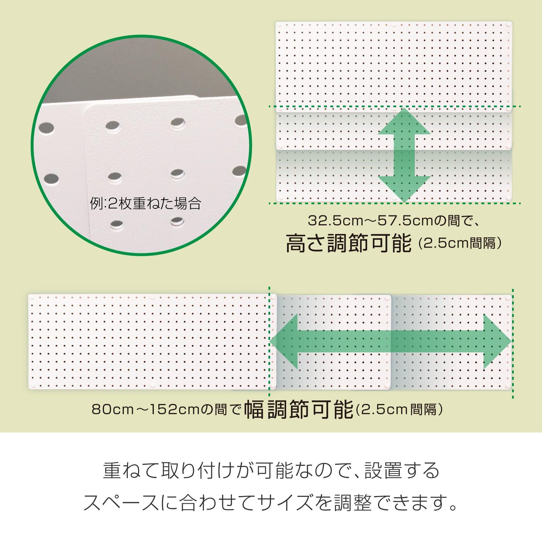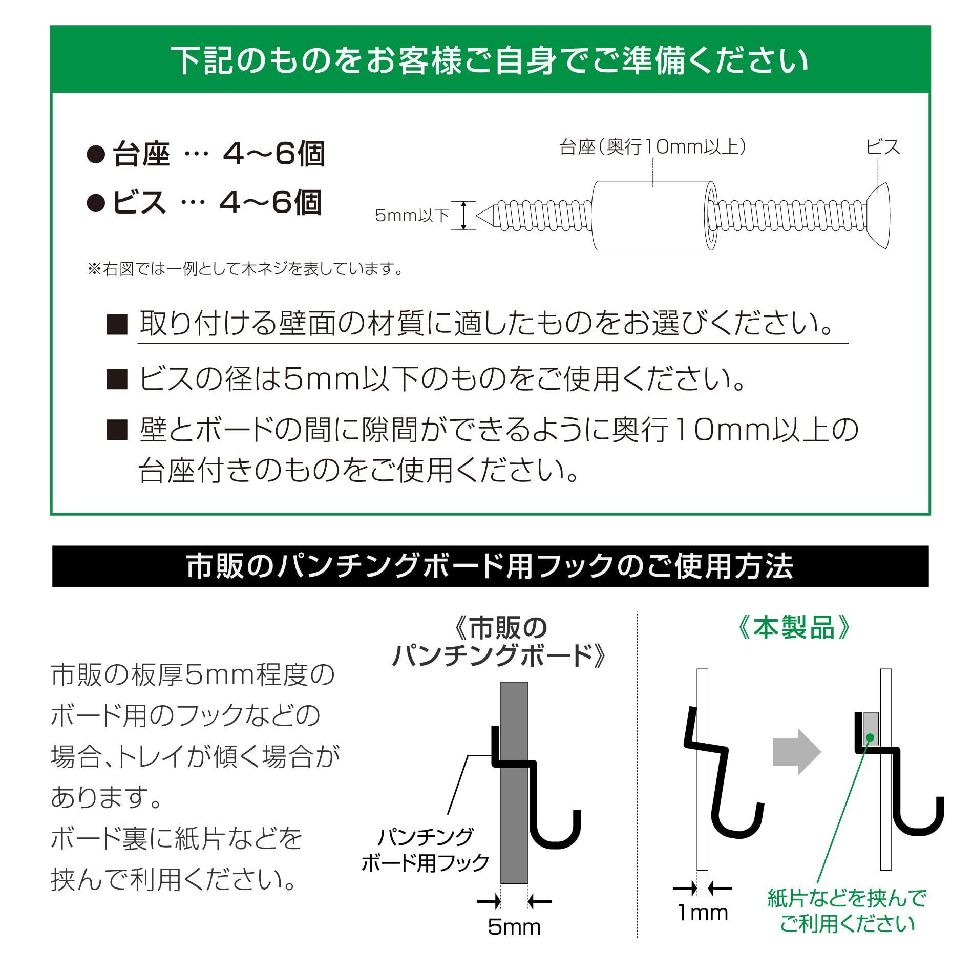 ●本体サイズ:幅600×高さ300×奥行(厚み)1.5mm●材質:金属(スチール)、エポキシ樹脂粉体塗装●孔間隔25mm●穴径5㎜●全体耐荷重10kg●お客様組立品