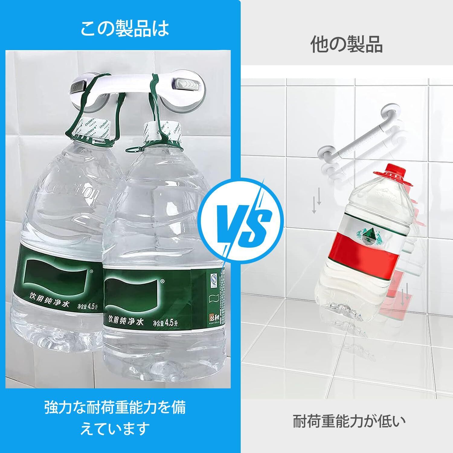 【抜群な吸盤デザイン】強力吸盤はアップグレードされたより厚いABS素材で製作しており、より耐久性があり、更に強力です。超耐荷重で、壁に長く掛けられ、より強力な吸引力を備えています。手すりの取っ手が広く、持ちやすくなっています。 広いグリップエリアは強い吸引力を保障できます。