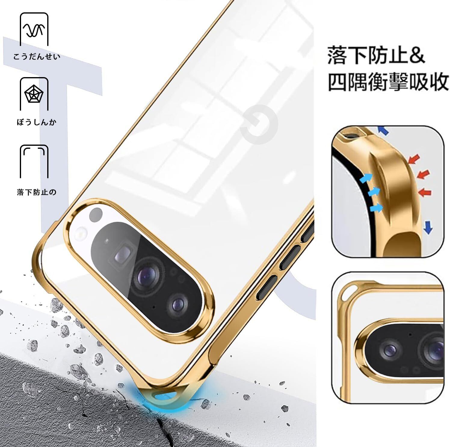 【2022最新】Google Pixel 9 PRO XL ケース クリア google pixel 9pro xlショルダー ピクセル9pro xlカバー 耐衝撃 調節可能な メッキ加工 保護ソフト TPU 取り外し ル付き ワイヤレス充電対応 クリア スマホケース ショルダー 薄型 軽量 肩がけ 首掛け 紐付き バンパー ストラップ付き ストラップホール付き 透明 Qi充電 カメラ保護(ゴールド)
