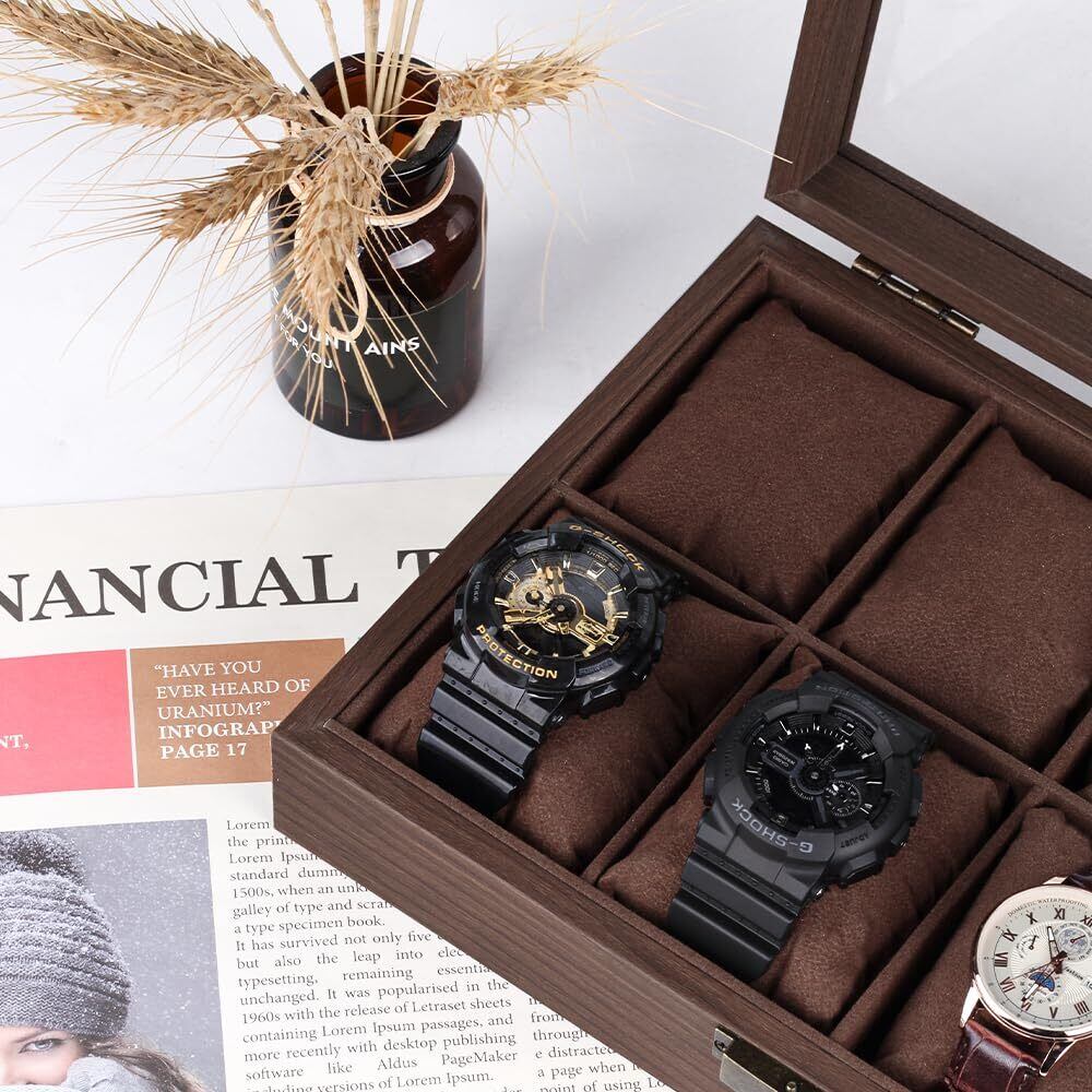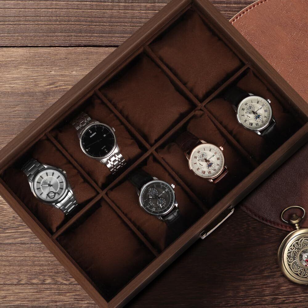 落ち着いた色味の木製収納ケースは大切な腕時計コレクションに相応しい安心感を与えます。シンプルですが、機能的なデザインは深さと直線にこだわり、上品と高級感を与えます。