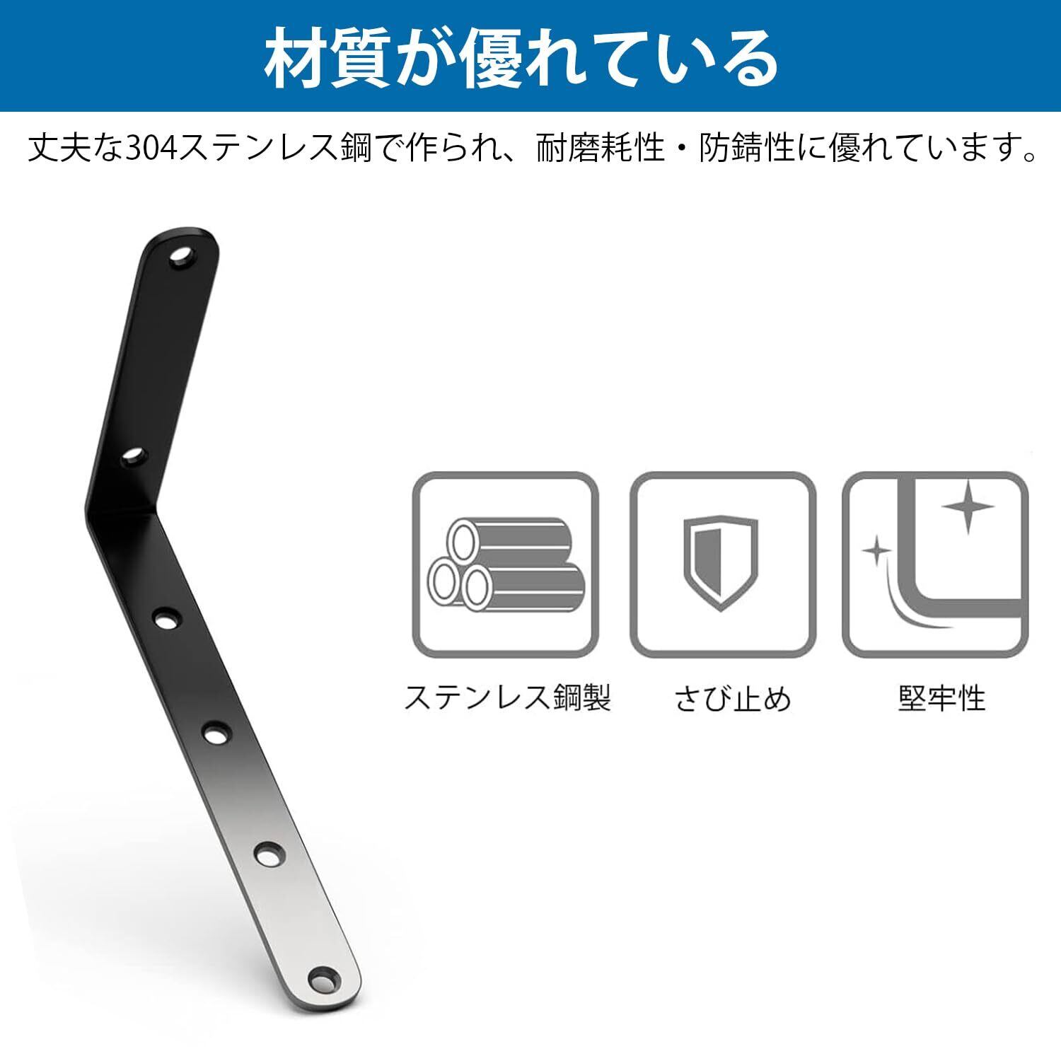 【材質】L字ブラケットもネジもステンレス鋼製で、室外で使用しても錆がついていません。内側にはプラスチックフィルム(使用時に引き裂く)があり、表面にはめっき処理がなく、バリがあるので、指を傷つけないように注意して使用してください。