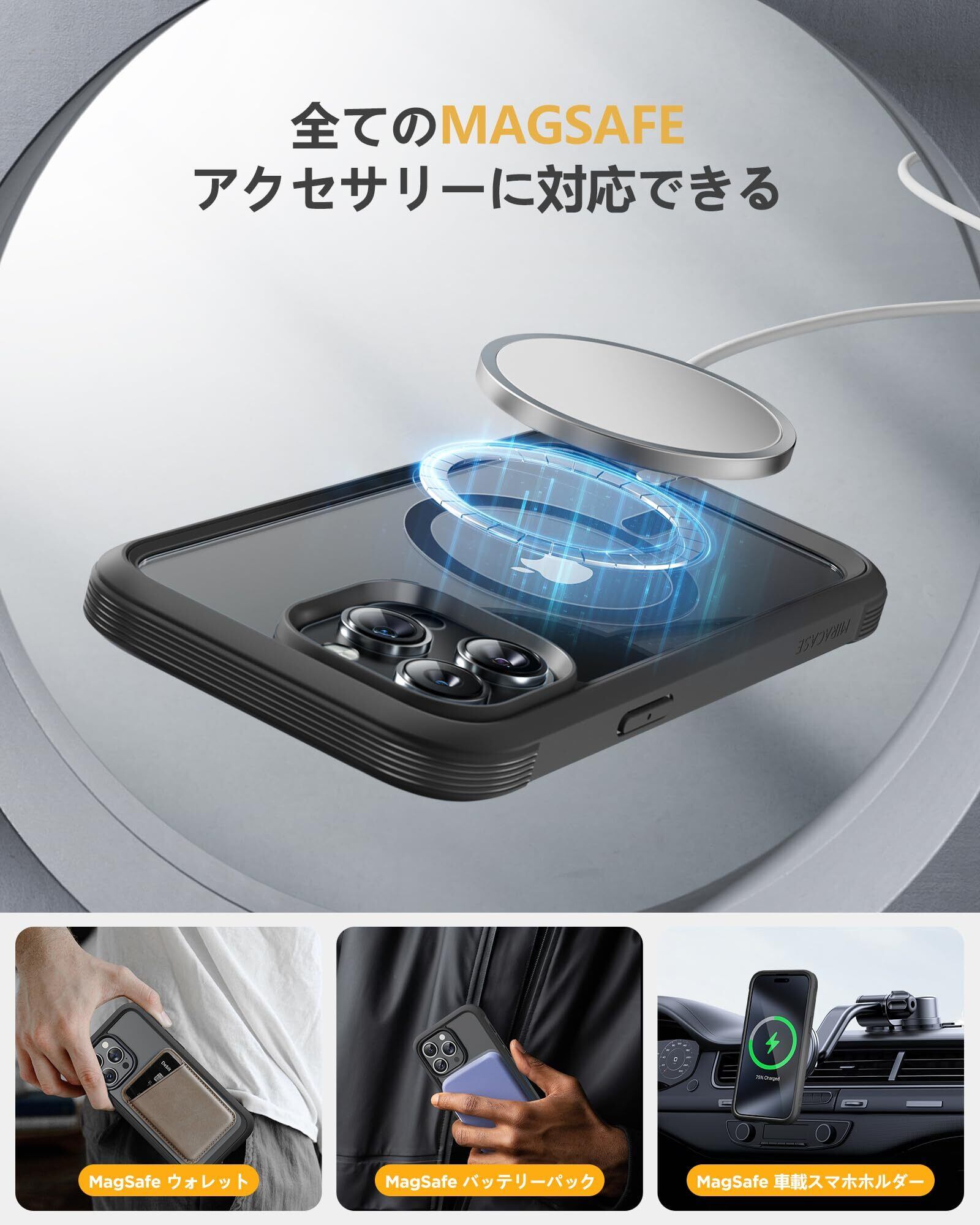 【強力な磁力吸着】2023アップグレード、iPhone15pro 用 Magsafe対応ケース。マグネットを搭載、超強力な吸着力でしっかり吸着します。利便性と実用性をアップさせ、ワイヤレス充電はもちろん、多様なマグネットアクセサリーとの素晴らしい組み合わせも実現できます。
