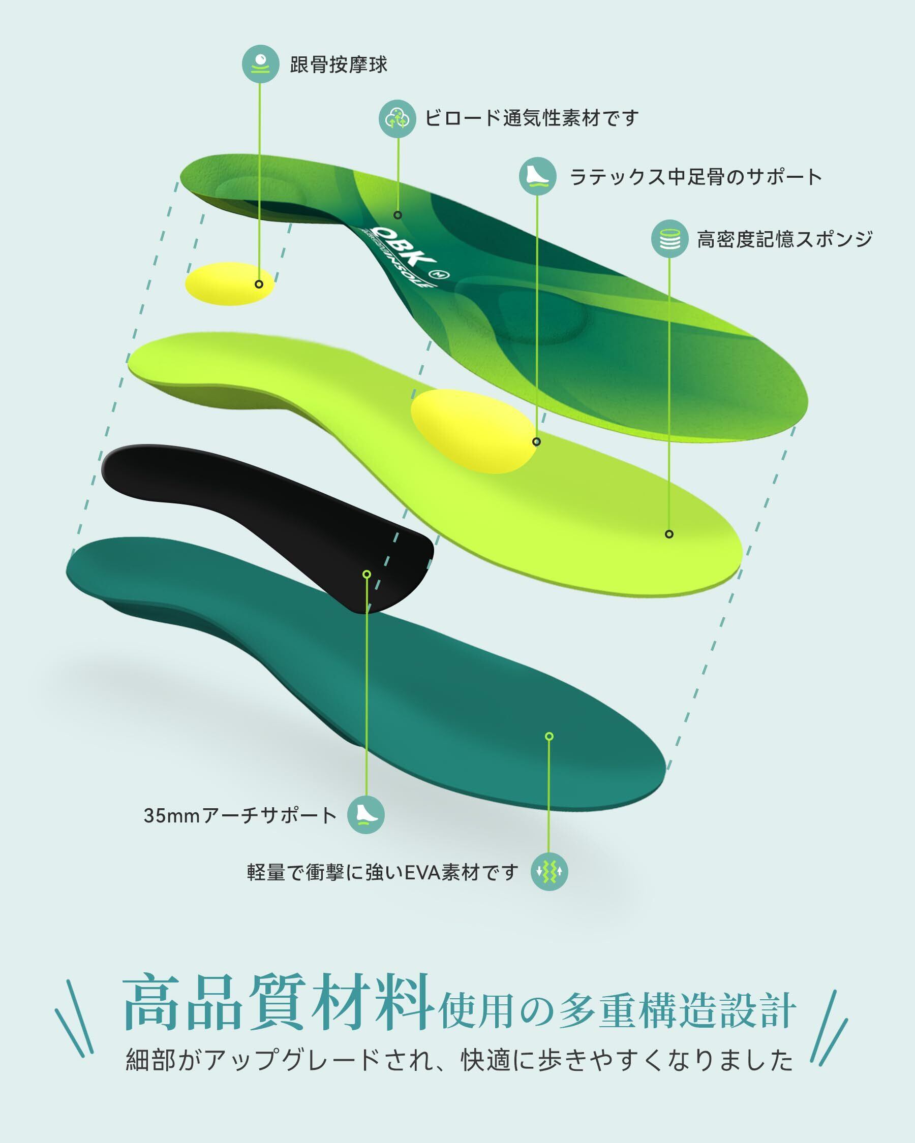 【アーチサポートインソール】当社のアーチサポートインソールは、足の問題を軽減するために特別に設計されています。 ハイアーチと中足骨マッサージボールのデザインにより、中足部の骨の痛みと足底筋膜炎を効果的に矯正し、扁平足の患者を軽減します。