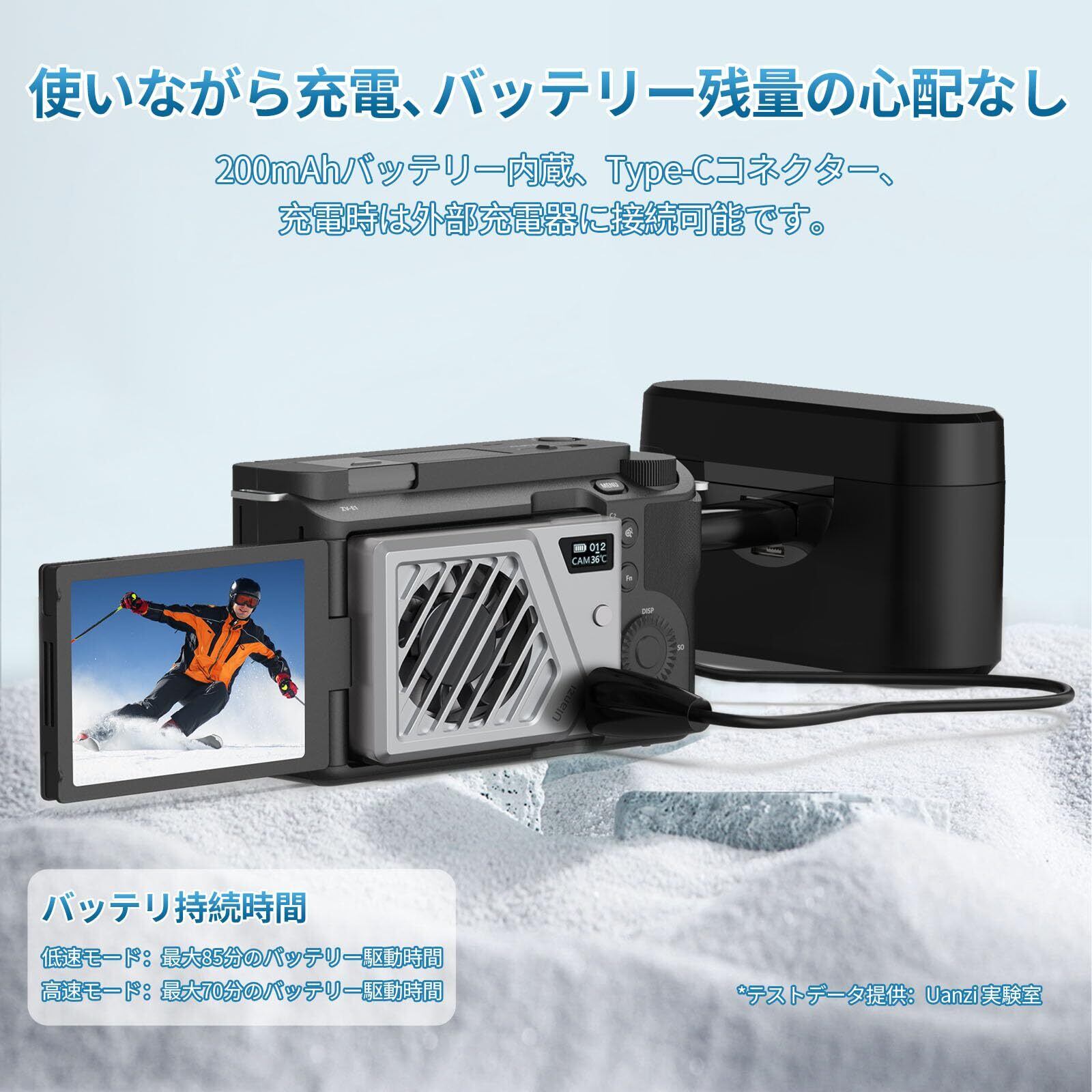 【200mAh充電池内蔵&使いながら充電】200mAhの電池を内蔵し、Type-Cコネクター、外部電源バンクとの接続オプションにより、使用中に充電することができます。フル充電時で弱風最大約85分、強風最大約70分時間の使用が可能です。