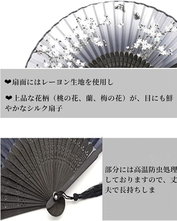 【独特なデザイン】上品な花柄(桃の花、蘭、梅の花)が、目にも鮮やかなシルク扇子。性別や年齢問わず、ご愛用いただけるシンプルで洗練された デザインが自慢の扇子です。