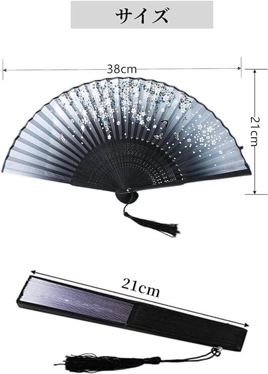 【セット内容】シルク扇子4本セットで、サイズ:畳んだ時:21cm、広げた時:38cm×21cm