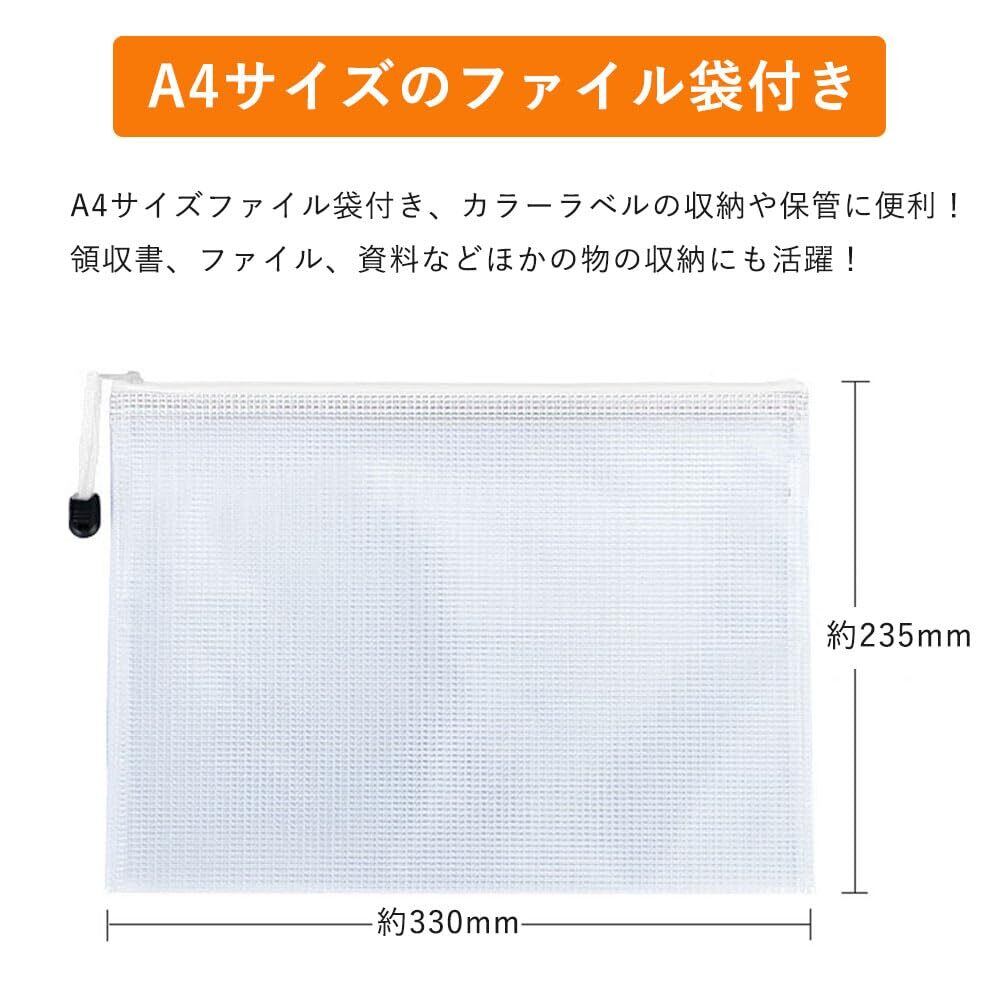 【A4サイズのファイル袋付き】A4サイズファイル袋付き、カラーラベルの収納や保管に便利!それに、ファイル袋はA4サイズで、領収書、ファイル、文房具、オフィス用品、 資料など色んな物の収納にも活躍!