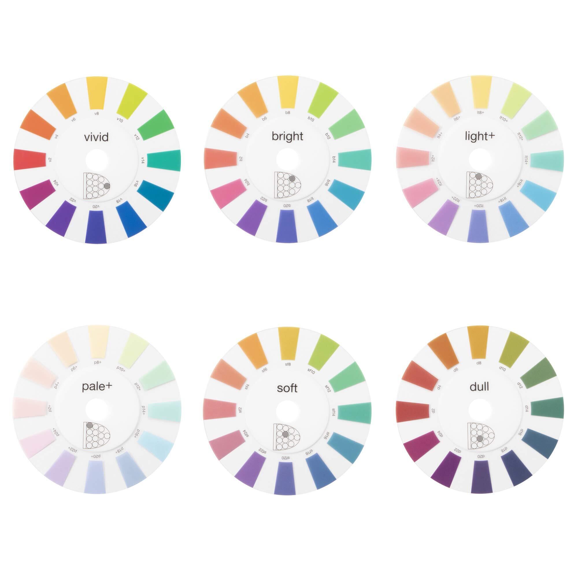 トーン別サークル11枚、11トーン各12色、色相関係サークル1枚、収納ポーチ付