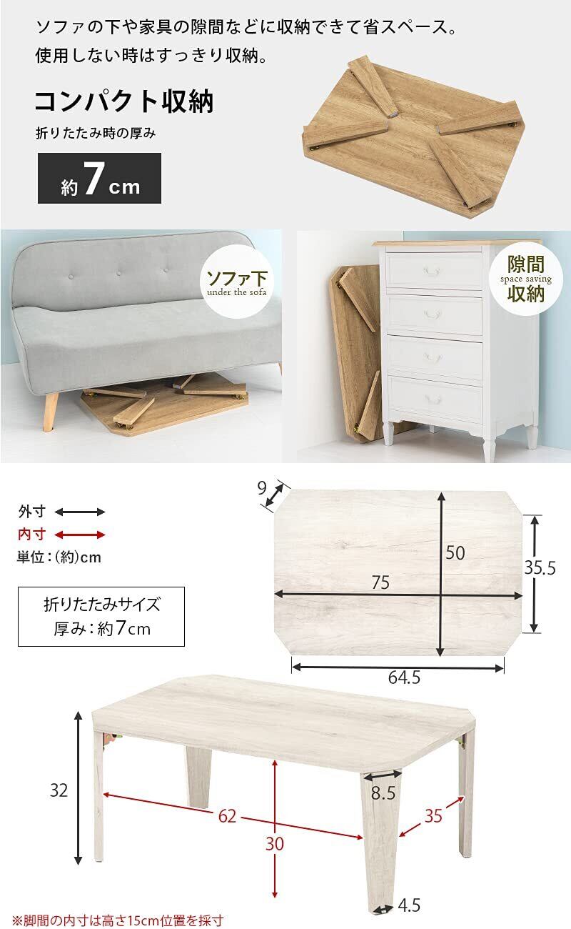 【新春セール】萩原(Hagihara) ローテーブル センターテーブル テーブル 机 【木目調天板がスタイリッシュ】 折りたたみ 完成品 軽量 ヴィンテージ リビング ソファテーブル 幅75×奥行50×高さ32 ナチュラル MT-6860NA