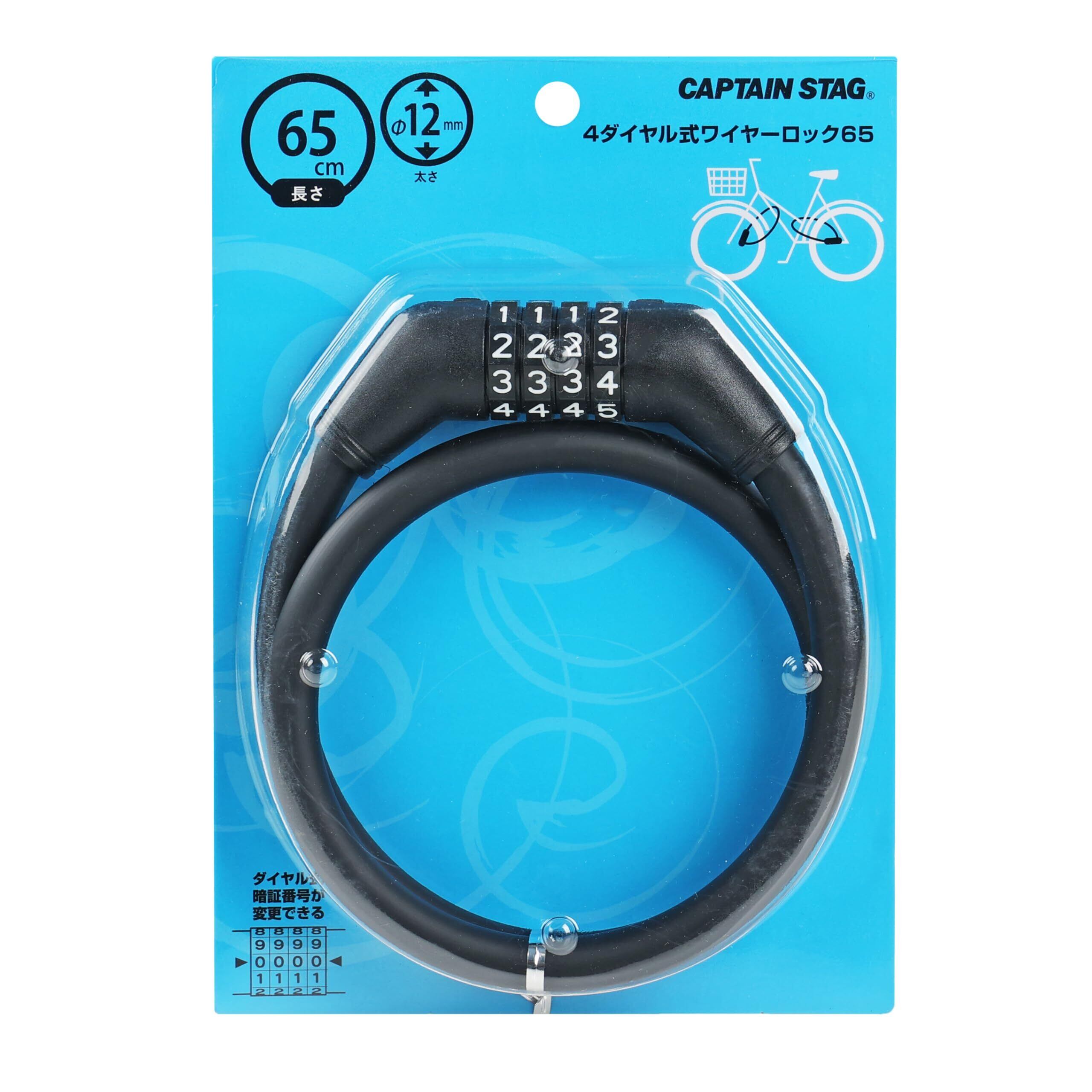 【在庫セール】【 限定】 キャプテンスタッグ(CAPTAIN STAG) 自転車 鍵 ロック ワイヤーロック 4桁 ダイヤル式 長さ650mm 直径12mm 暗証番号変更可能 マットブラック Y-7908