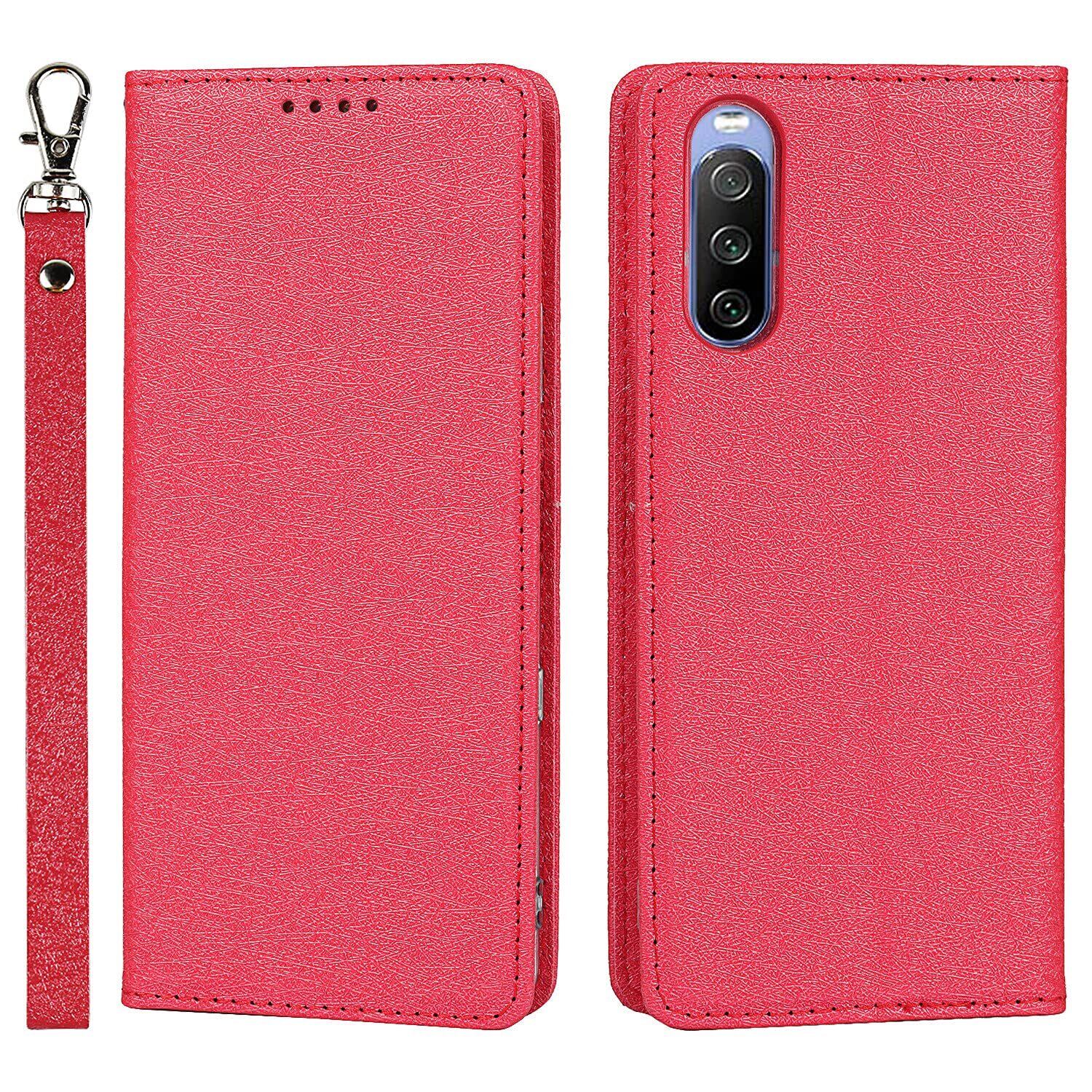 for Sony Xperia 10 III docomo SO-52B au SOG04 ケース for Xperia10 iii ケース 手帳型 for sony 10iii case ストラップ付き PU皮革 明るい色 内蔵マグネット 携帯カバー カードポケット スタンド機能 レッド