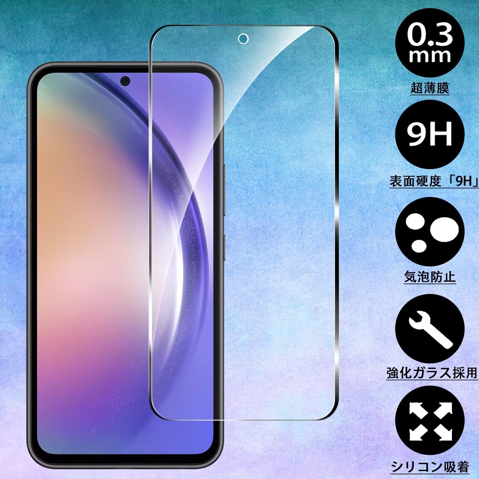 【2枚セット】対応 Galaxy A54 5G SC-53D/SCG21 用のガラスフィルム 全面保護 強化ガラス 液晶保護フィルム 【簡単貼り付け】 対応 Galaxy A54 5G 用の対応 ガラスフィルム【自動吸着/硬度9H/貼り付け簡単/干渉しない/気泡ゼロ】
