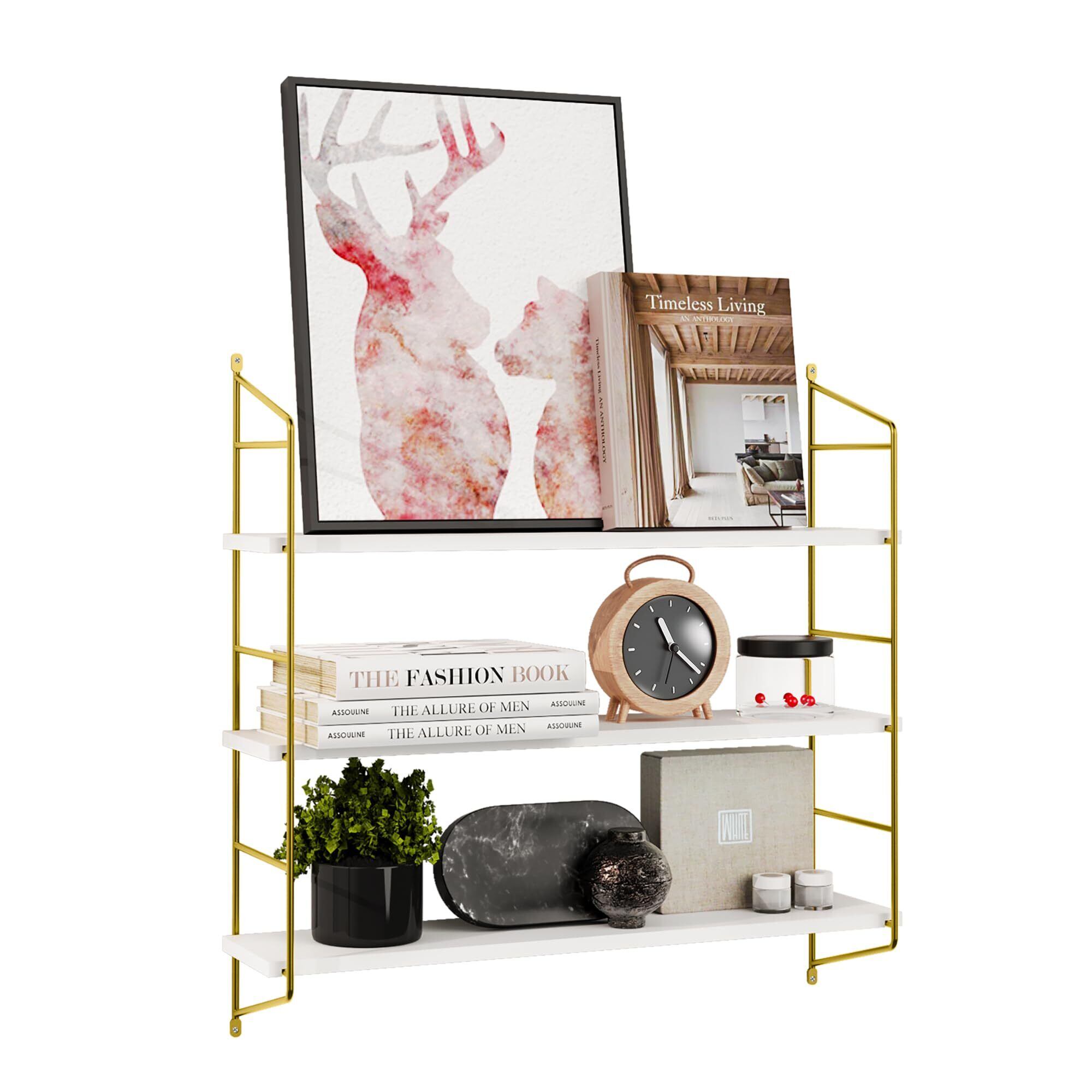 Koramaku ウォールシェルフ 壁掛け棚 高さ調節可能 3段式 高60 取り付け簡単 ウォールラック 壁面収納 DIY 棚 飾り棚 おしゃれ 北欧 本棚 洗濯機 賃貸 石膏ボード 壁棚 玄関 リビングルーム ベッドルーム 書斎 キッチン 耐荷重 ホワイト