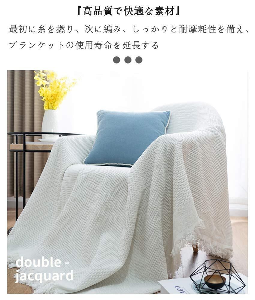 HomeFirst 北欧風 マルチカバー 長方形 130*180cm ソファーカバー 1 2 人掛け おしゃれ ブランケット フリンジ付き 綿 ベッドカバー カウチ ベッドカバー 毛布 テーブルクロス 無地 両面使える 水洗い 四季通用 (ワッフル柄)