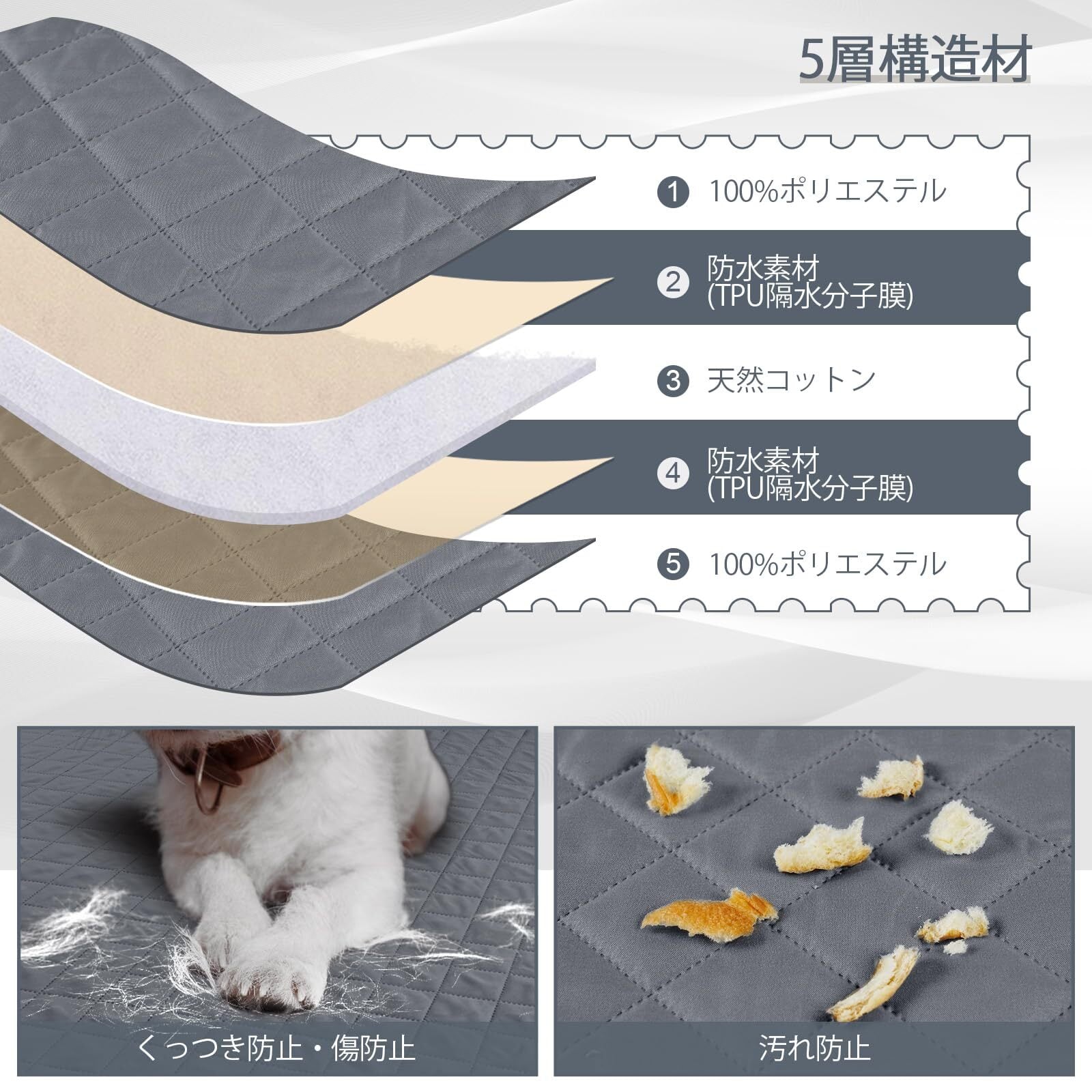 【リバーシブル防水素材】TAOCOCO リバーシブル 防水 ソファーパッドは表地:100%ポリエステル 中地:防水素材(TPU隔水分子膜)+天然コットン+防水素材(TPU隔水分子膜) 裏地:100%ポリエステル