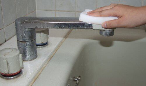 ●スポンジに水を含ませ、掃除したい部分をこするだけ。あとは乾いた布で水気をふき取り簡単きれい