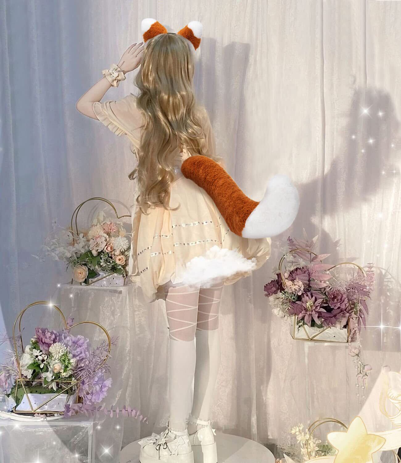 【2点セット】セット内容:きつね耳カチューシャ×1、きつねしっぽ×1。しっぽの長さは約60cm誰でも使用できます。