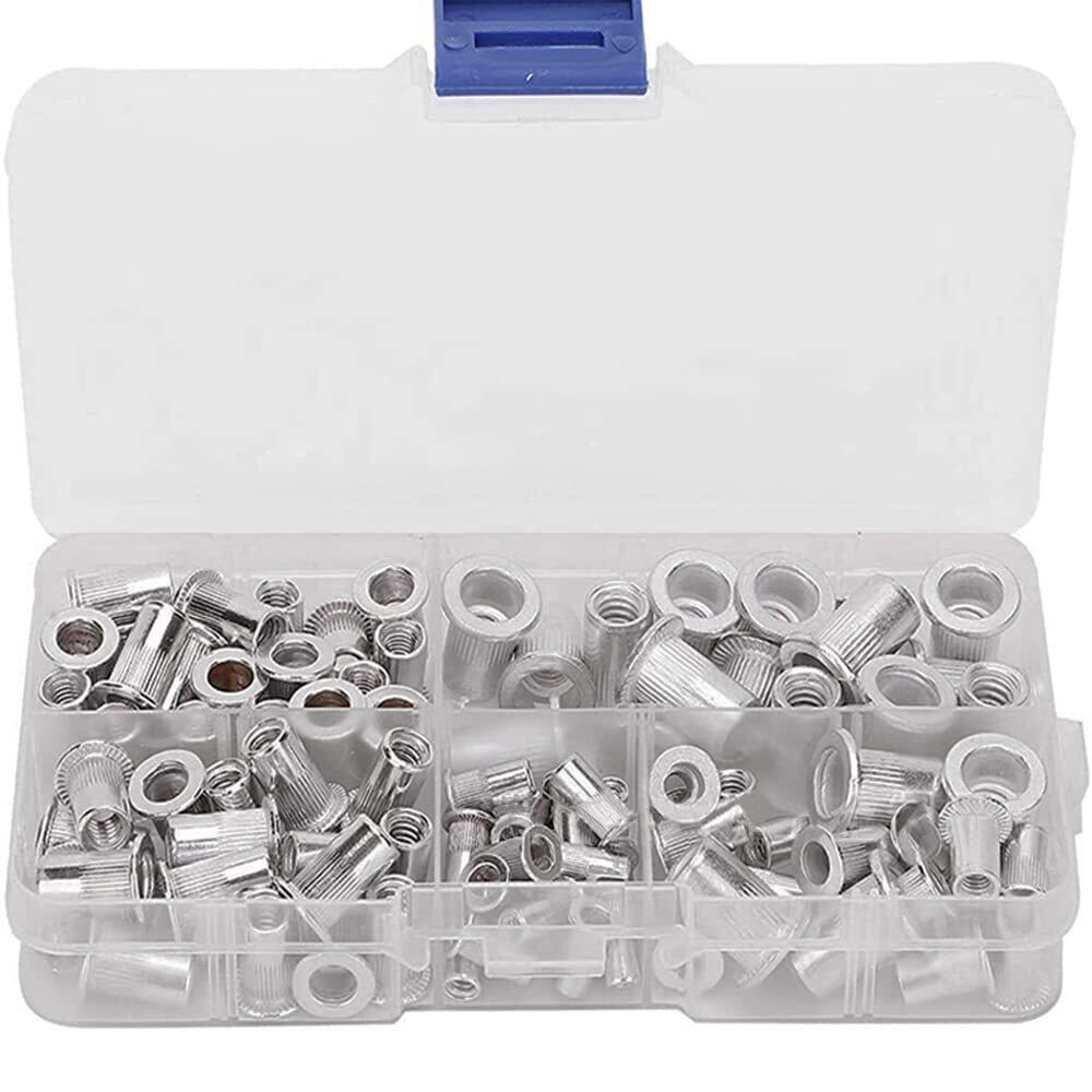YFFSFDC リベットナット アルミニウム製 ブラインドナット スレッドリベットナット 100個入 中空リベット DIY 機械 車 修理 部品 収納ケース付き M3 M4 M5 M6 M8