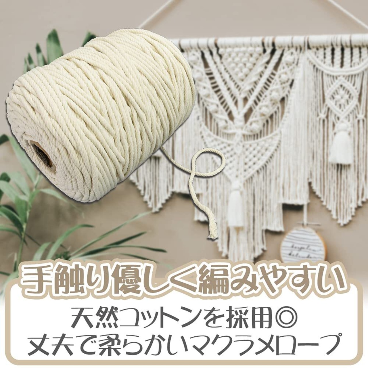 マクラメロープ 手芸紐 5mm コットン素材 天然コード 編み糸 アクセサリー 装飾 壁飾り (200M ベージュ)