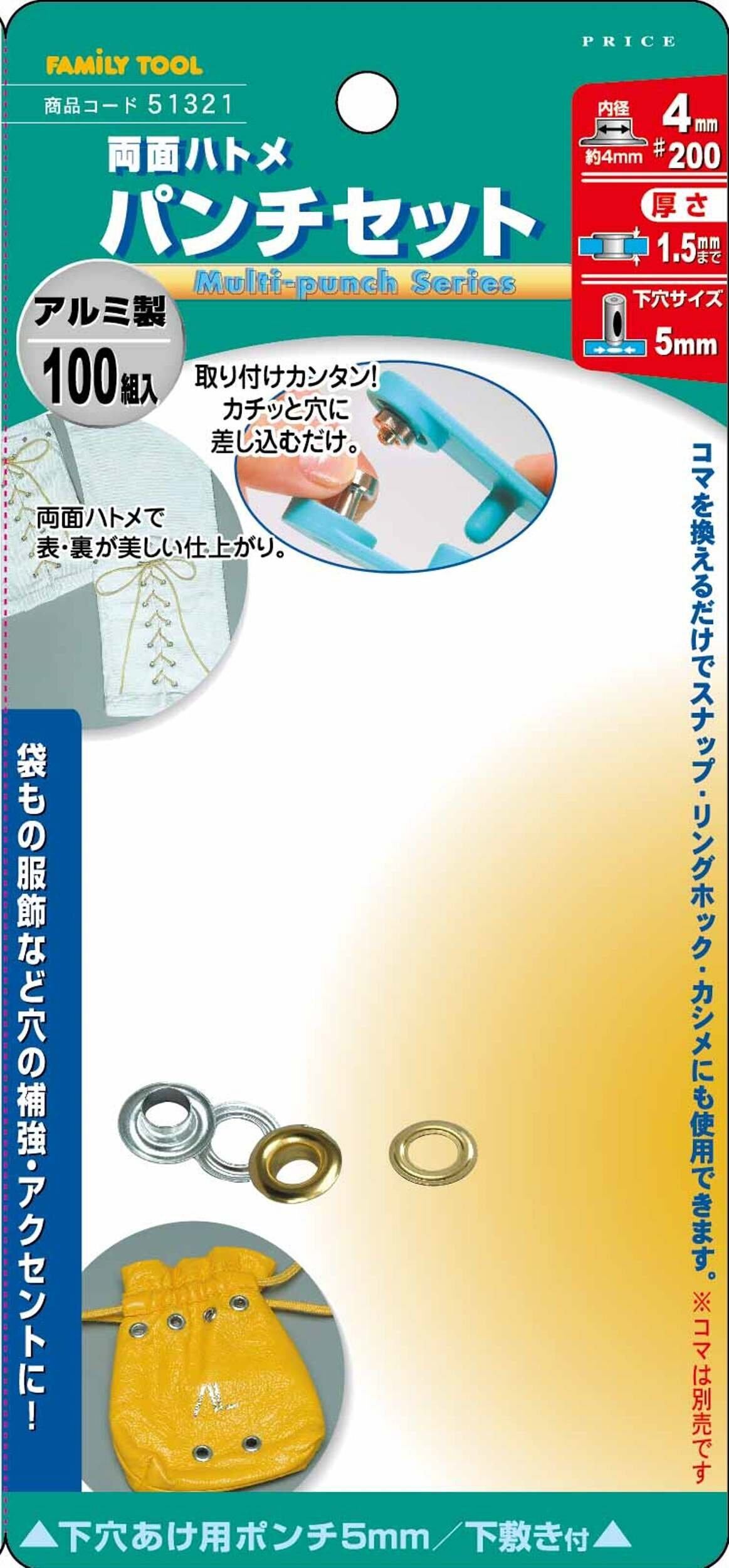 イチネンアクセス ツール事業部 FAMILY TOOL(ファミリーツール) ハトメ 両面ハトメ パンチセット 51321 4mm(#200) アルミ製 100組入