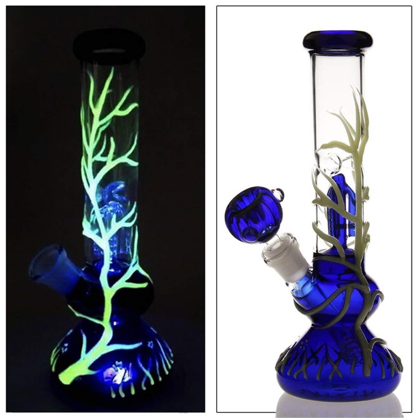 Honey Glass Hookahs 9.4"ガラスボング (水パイプ)18mmジョイントの煙管煙草 bong ボング/ブルー Glow in dark Bongs/Glass Water Pipes(ランダムな色で送信)