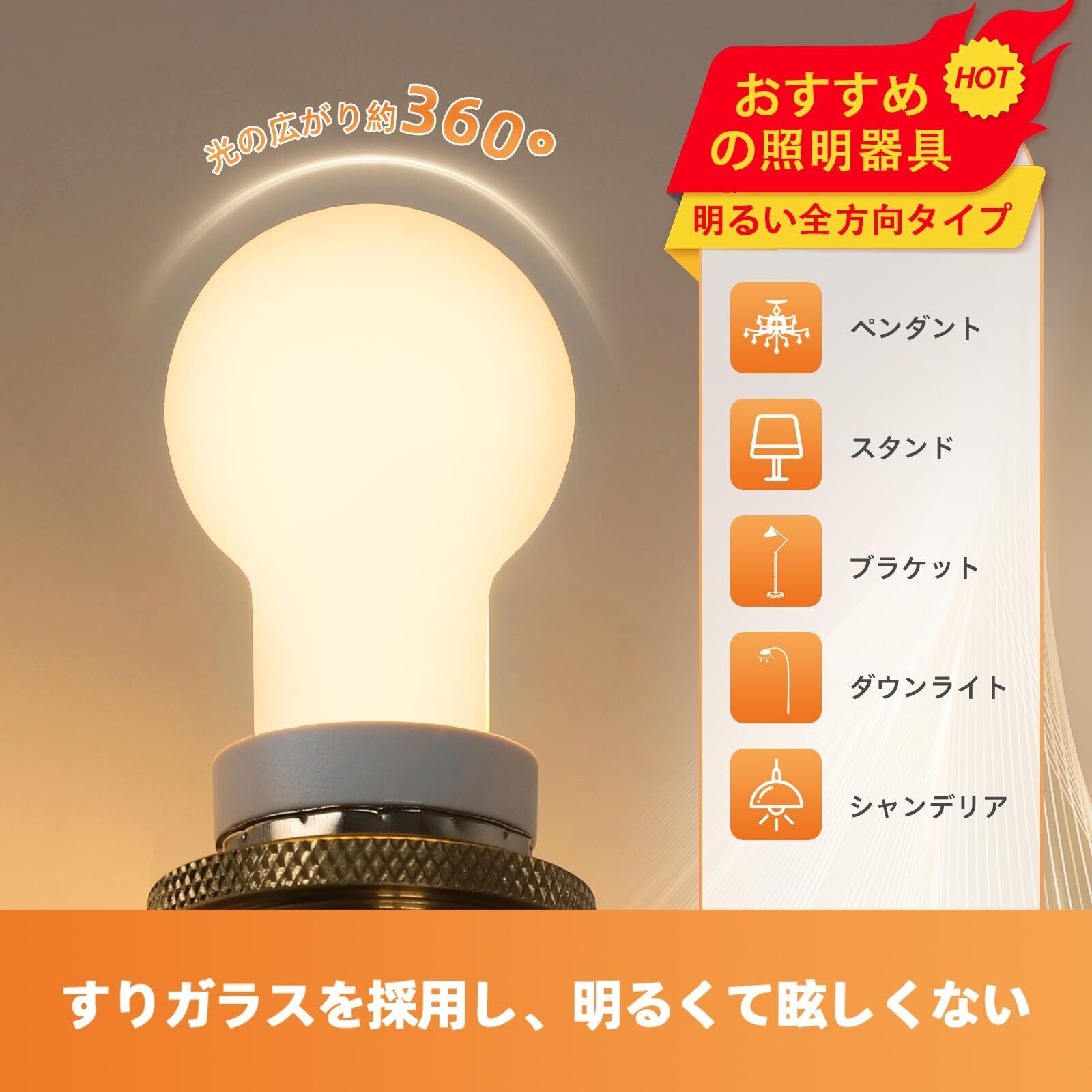 ◎全配光・高演色性:360°の全配光設計で、照射範囲が広く、スイッチを入れた瞬間に点灯する。3000K(電球色相当)の色温度で、伝統的な電球の明かりの質感を維持し、暖かい雰囲気を醸し出しています。85+の高演色性で、物体の本当の色を自然に再現できます。※注意:調光不可