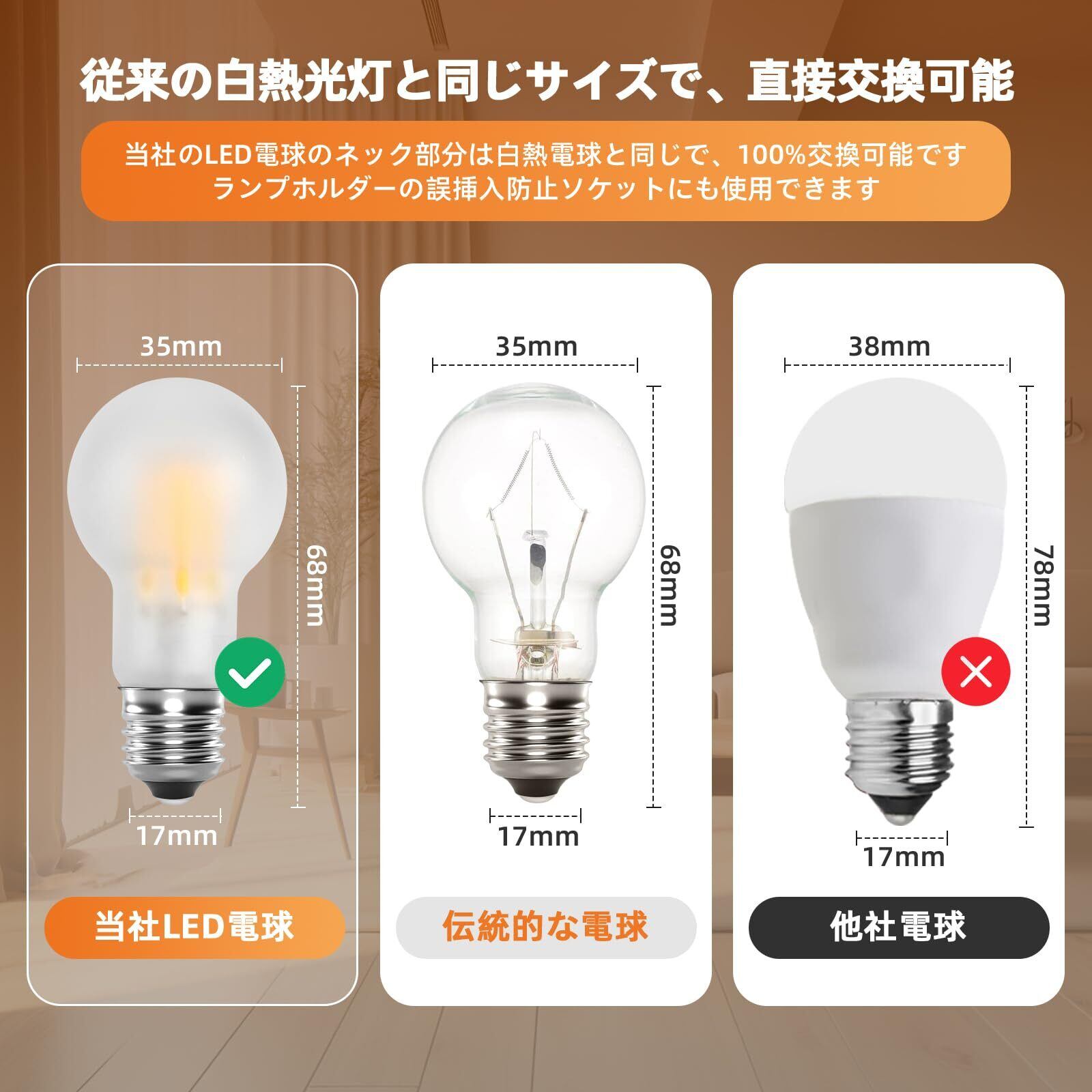 ◎眩しさを防ぐ·取付け簡単:フィラメント電球は高品質のすりガラスを採用し、透光性が高く、光が均一で柔らかく、明るく、眩しさを防止しています。長時間使っても目が疲れません。設置が便利で、玄関、階段、リビング、レストラン、店舗、ホテルなどに使用できます。